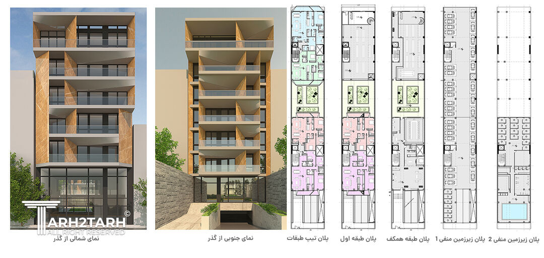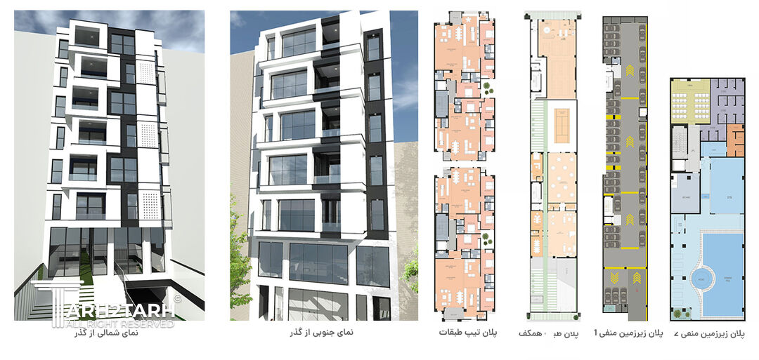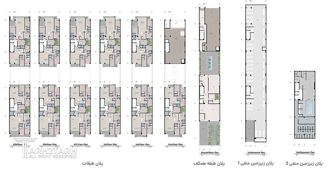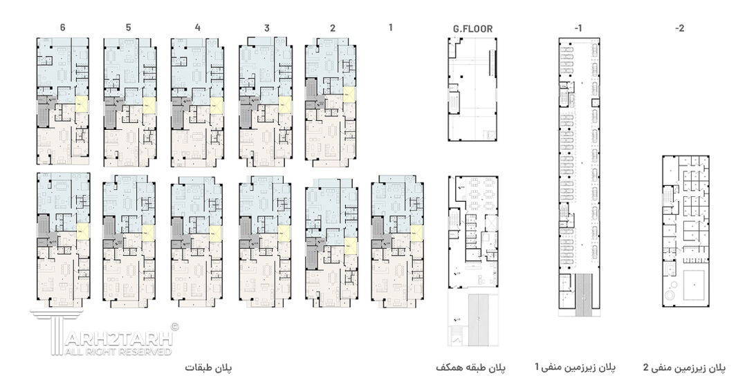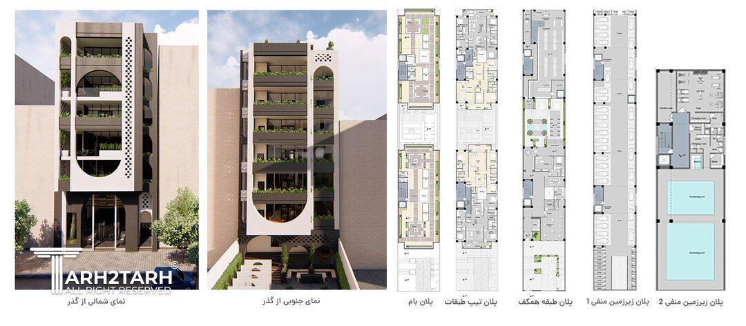 در این پروژه، دو بلوک شمالی و جنوبی وجود داشت که در بلوک شمالی، طبقه همکف به یک واحد تجاری اختصاص داده شده بود. حیاط مرکزی این مجتمع از مولفههای جذابیت آن و همچنین، طراحی بهترین منظره به بیرون واحدها و کمترین دید به داخل آنها از نقاط حساس طراحی بود. کارفرمای این پروژه با دقت و حساسیت بالا، تک به تک طرحهای ارسالی را بررسی کرده و نظراتش را در مورد آن نوشته است که در انتهای مقاله، قابل دانلود است. لازم به ذکر است تمامی طرحها به ایشان بدون نام تحویل داده شده اما برای خوانایی بیشتر فایل، هنگام تولید محتوای این مقاله، کدهای معماران را به نام آنها تغییر دادهایم. در ادامه، به بررسی بیشتر طرح نفرات برتر میپردازیم.