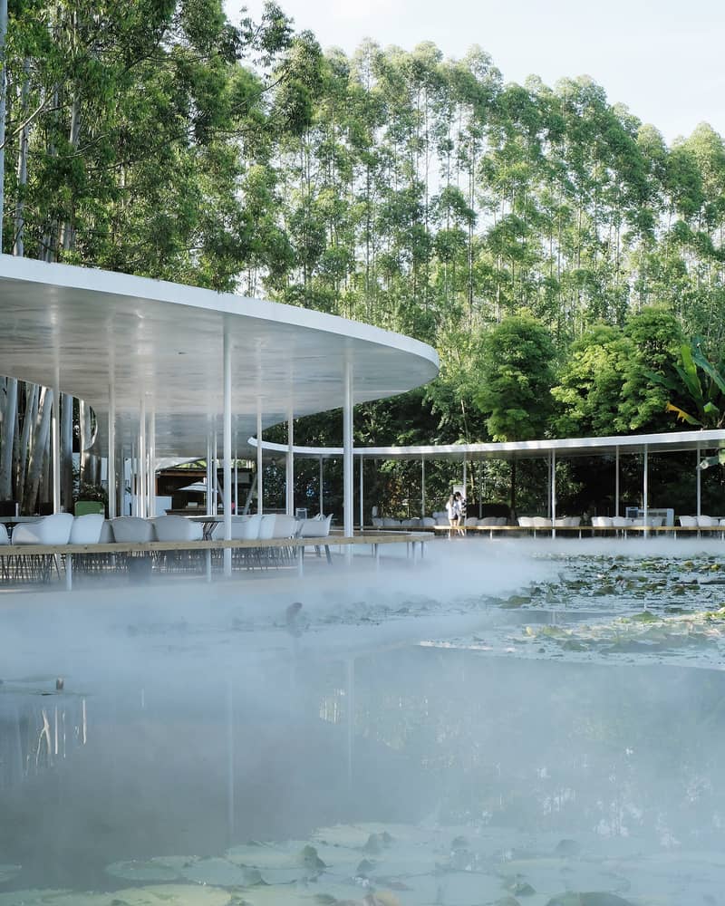 بخار دریاچه مانند بخار و دود یک دیگ جوشان از آن بلند شده و در بین درختان و ستون های رستوران پخش می شود تا منظره و طبیعتی فوق العاده را دبه نمایش بگذارد. ستون های نازک به طور مساوی در دو طرفِ سقف پخش شده اند و از لحاظ حفظ ایمنی در سازه بی نقص هستند.