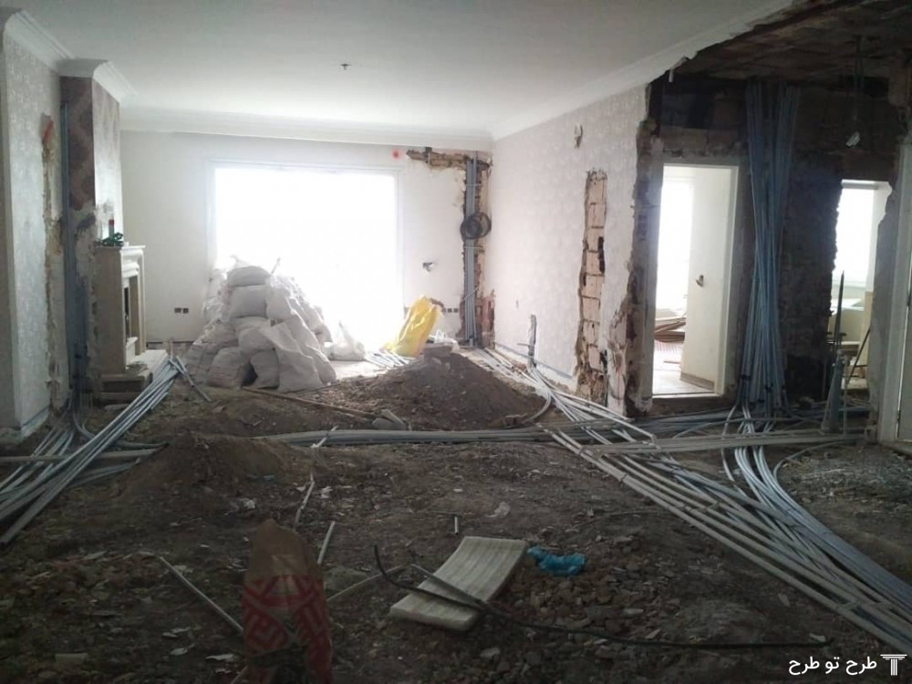 • در ضلع جنوبی، شومینه به داخل فضای تراس اضافه شود و تراس از مرزشومینه شروع شود.