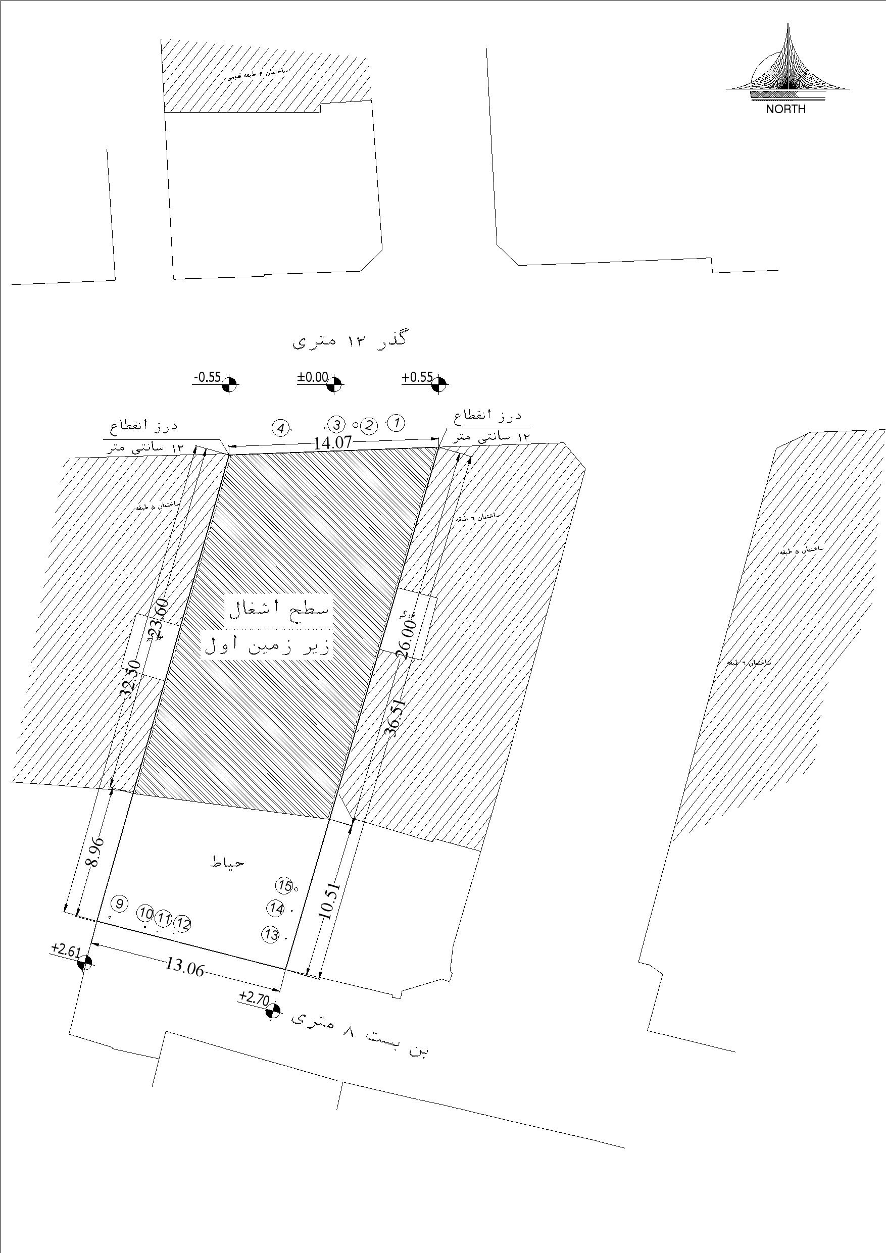 • حداکثر تراز ارتفاعی طبقه همکف 1/20+ می باشد.