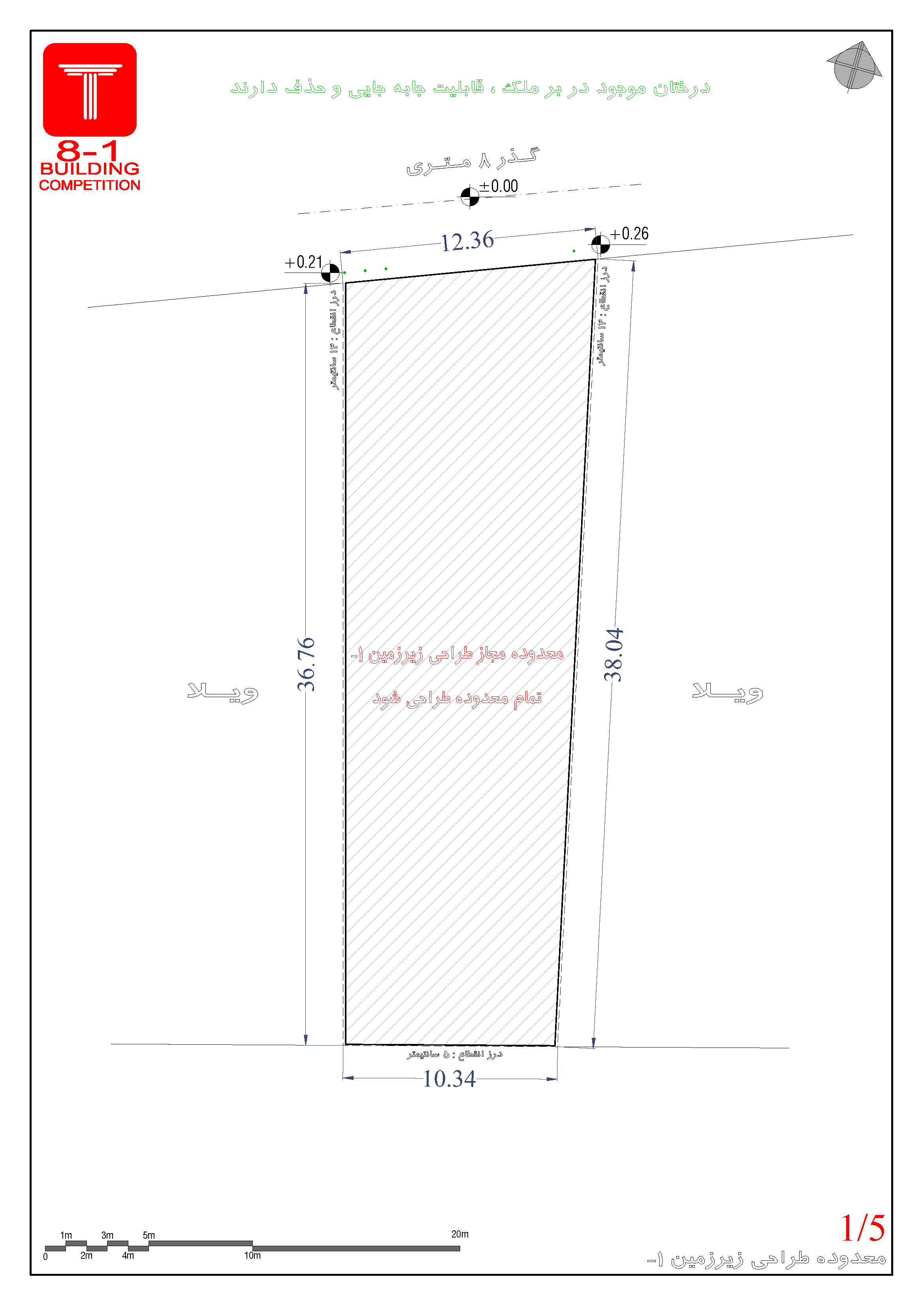 • سطح اشغال طبقه زیرزمین 100 درصد زمین میباشد، مطابق با فایل اتوکد آپلود شده در بخش فایلهای راهنما