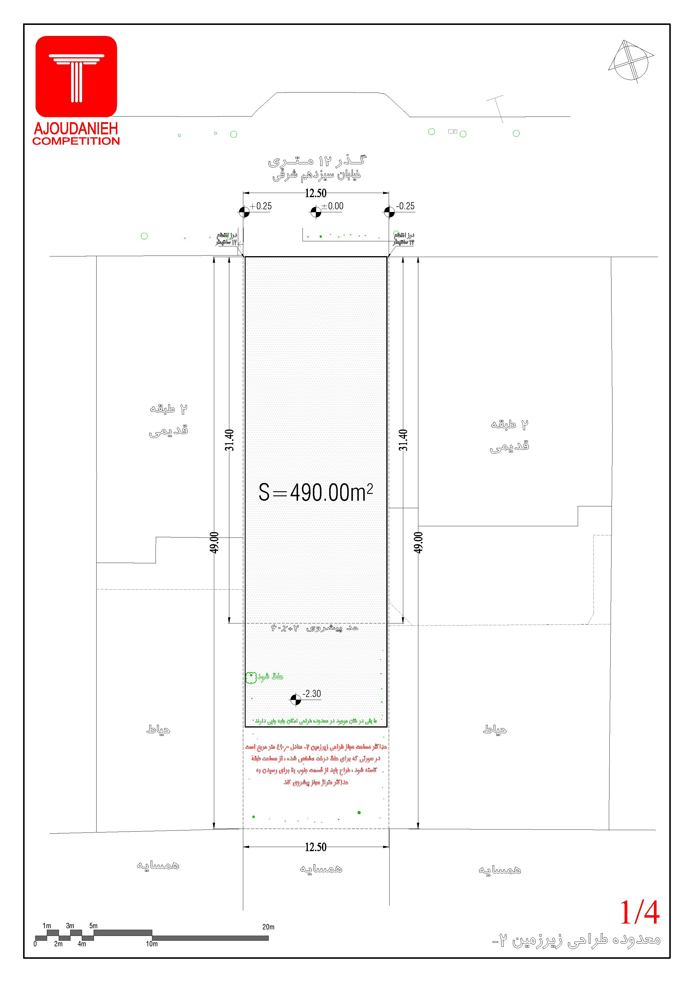 • سطح اشغال طبقات زیرزمین مطابق با فایل اتوکد آپلود شده در بخش فایلهای راهنما