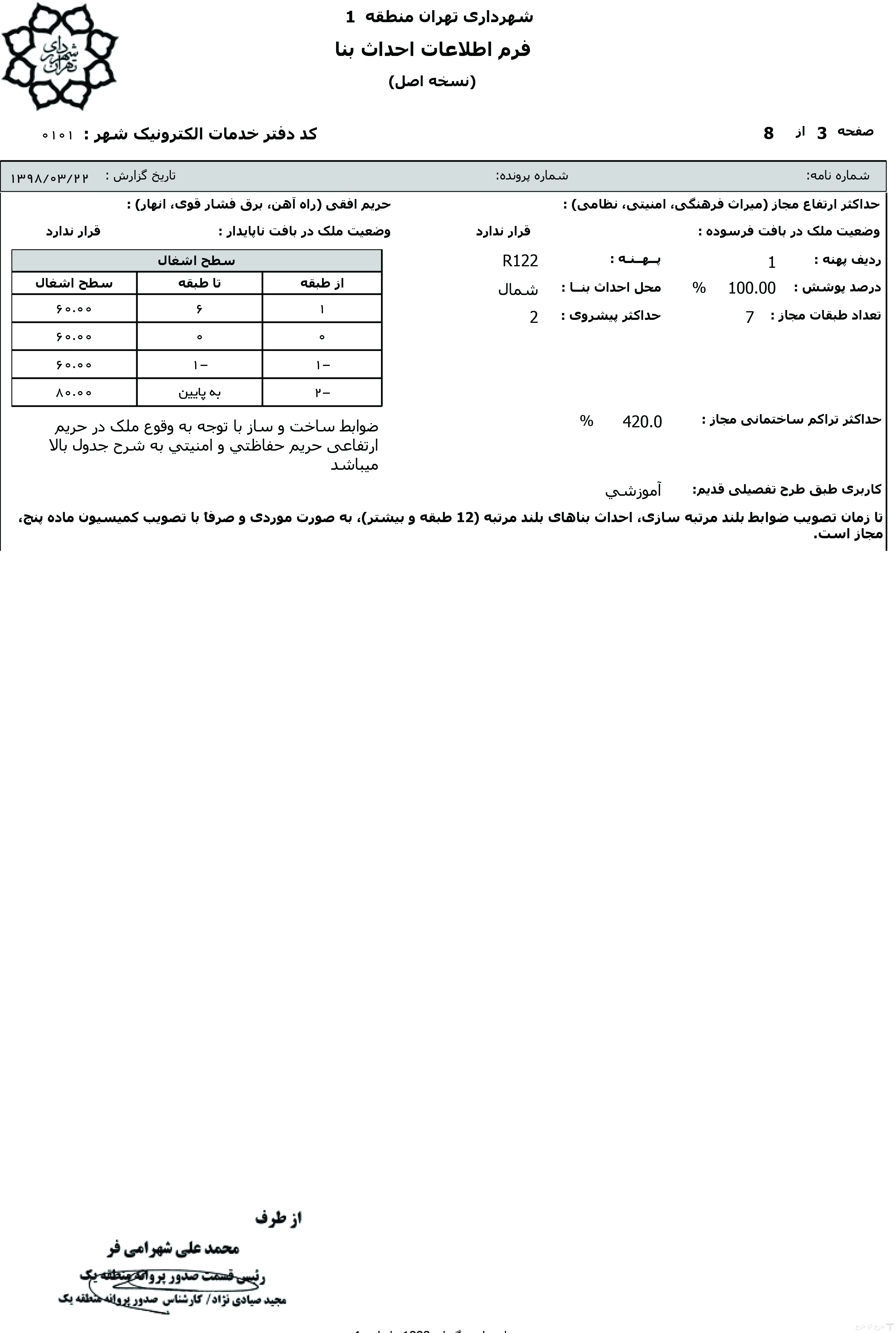 توضیح: لطفا متراژ واحدها و متراژ مشاعات در فایل پلان های ترسیمی درج شود.