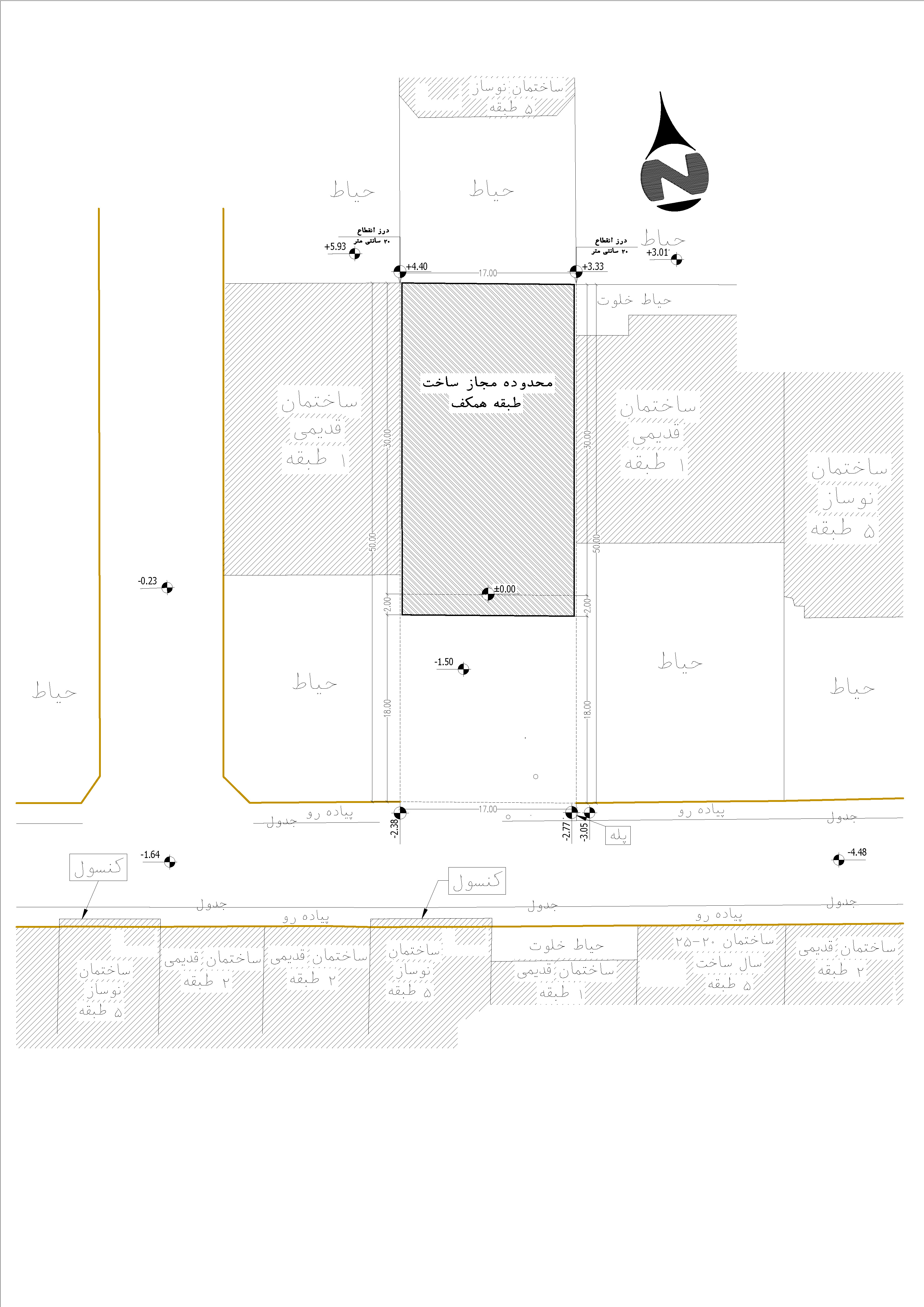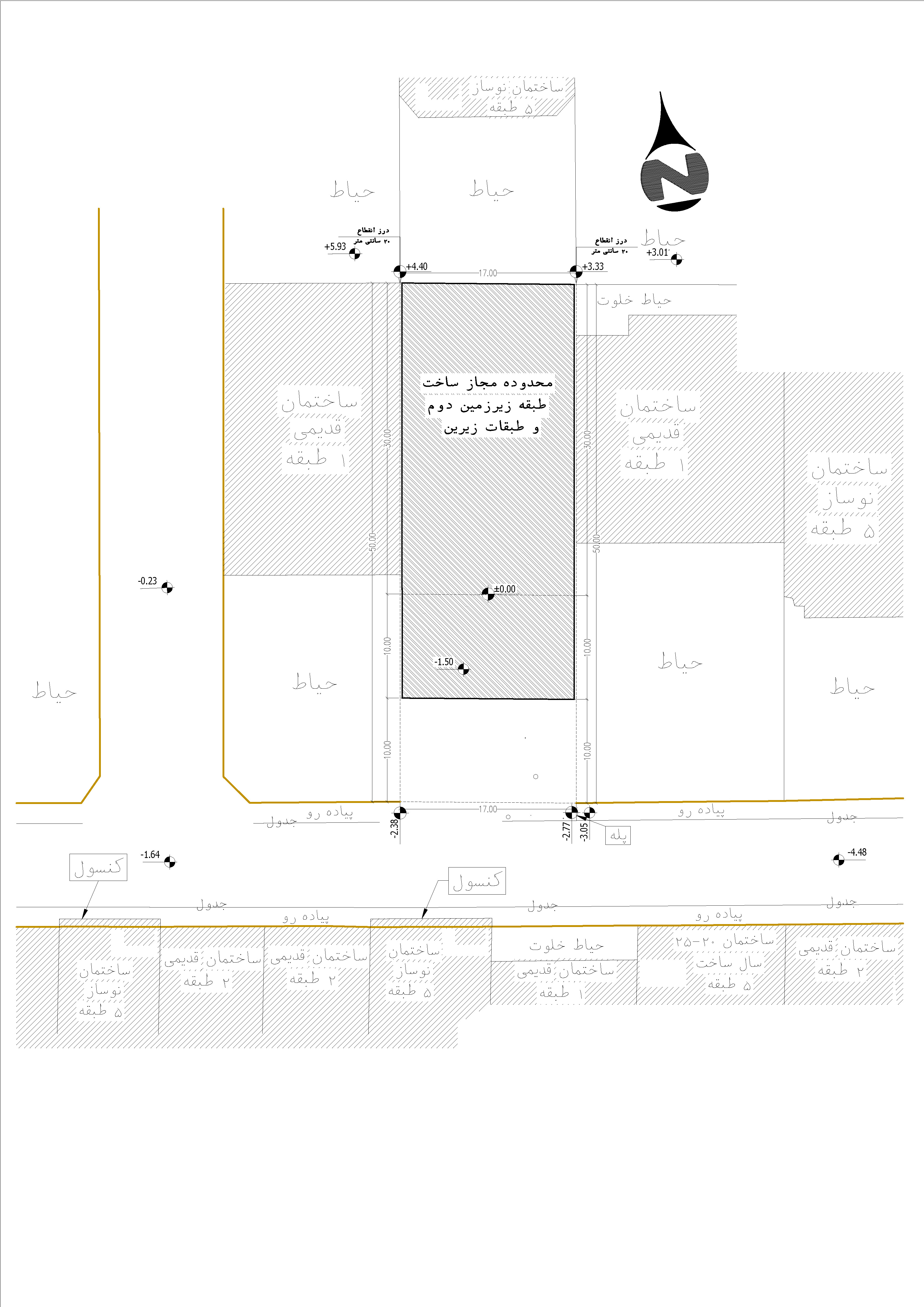 • مطابق با ضوابط شهرداری منطقه 3 تهران چنانچه کد صفر در محل مشخص شده در فایل اتوکد پیوست تعریف شود، میبایست پروفیل طولی (شیب) و وضعیت موجود زمین در یک سوم مساحت حیاط حفظ شود.