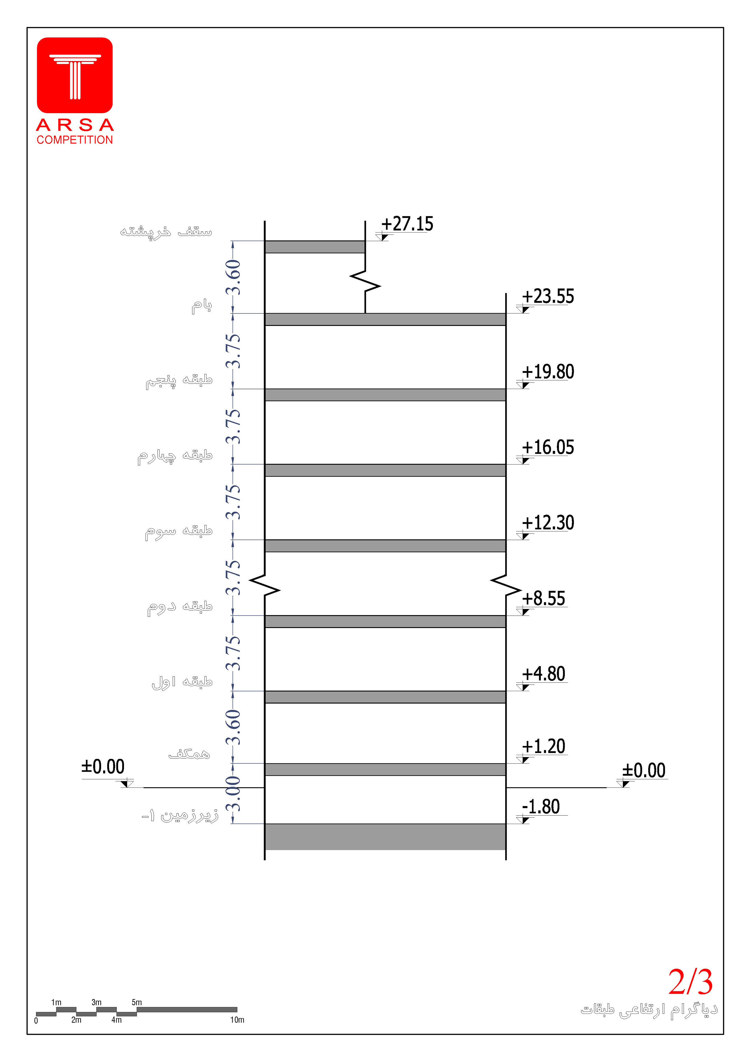 • پلان اندازه گذاری طبقات اول تا پنجم با فرمت JPG