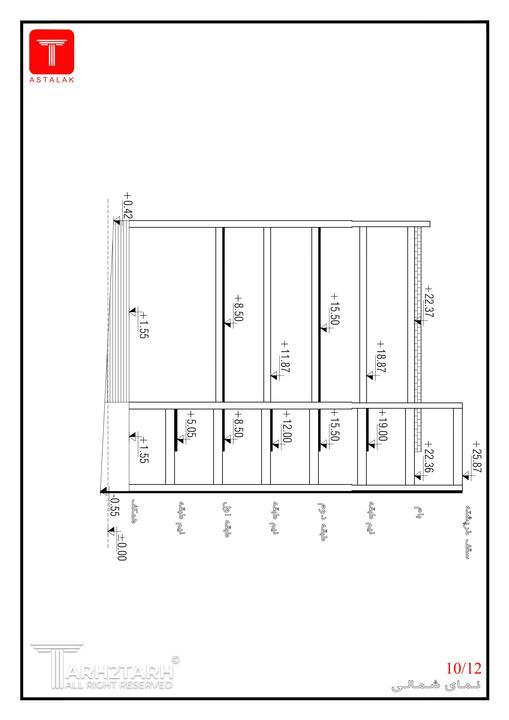 • کدهای ارتفاعی در تمامی پلانها، نماها و مقاطع درج شود.