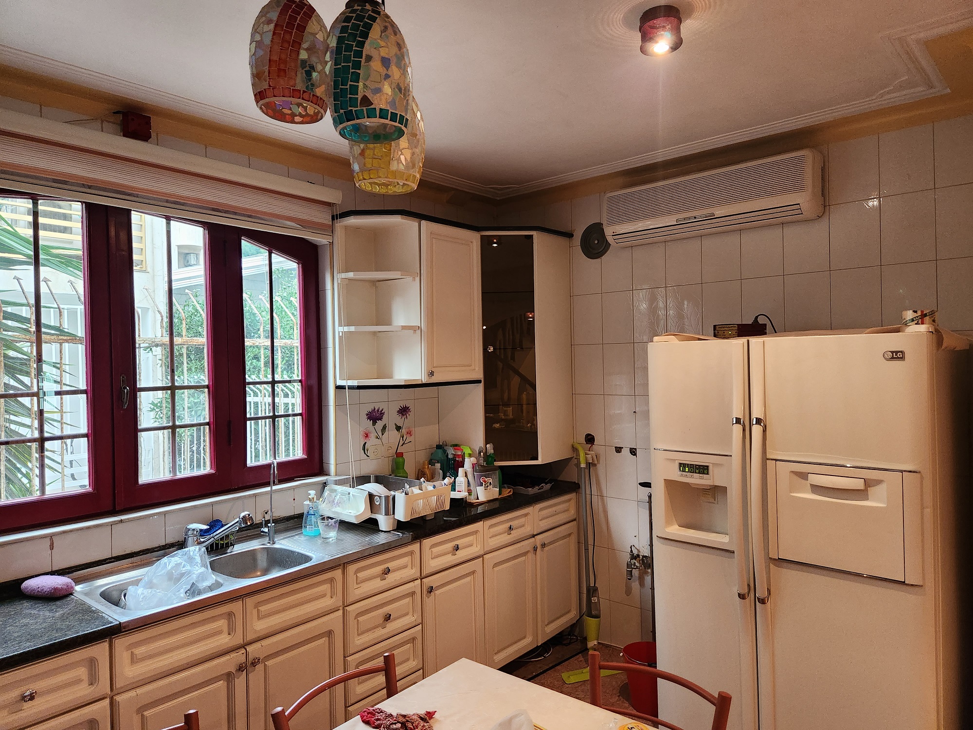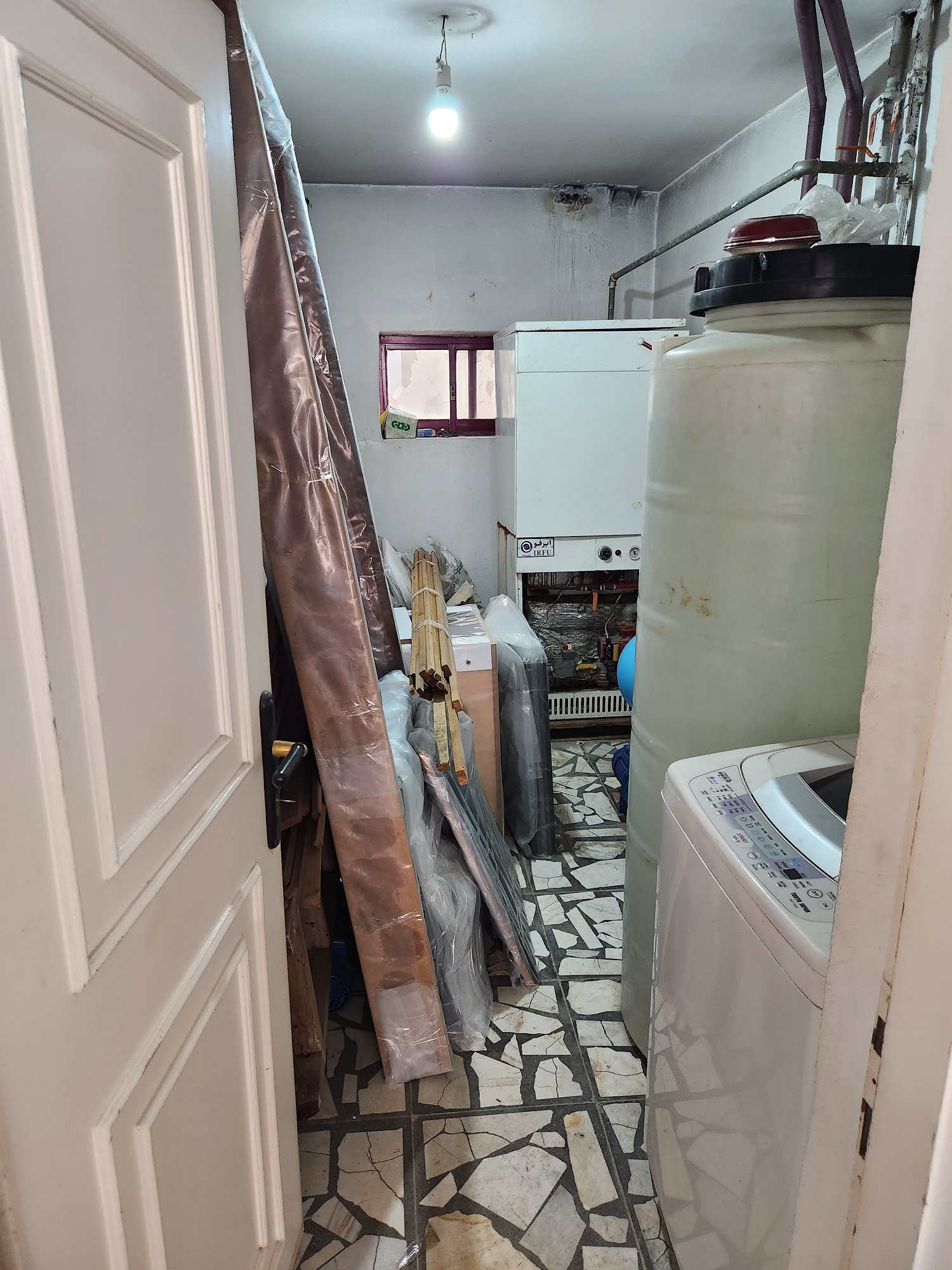 • وضع موجود: ملک چهار واحد پارکینگ، یک آشپزخانه کثیف (انبار)، یک شوفاژخانه و یک واحد سرویس بهداشتی دارد. از فضای آشپزخانه به حیاط خلوت پشت بنا دسترسی وجود دارد. ماشین لباسشویی و فضای لاندری در شوفاژخانه تعبیه شده است.