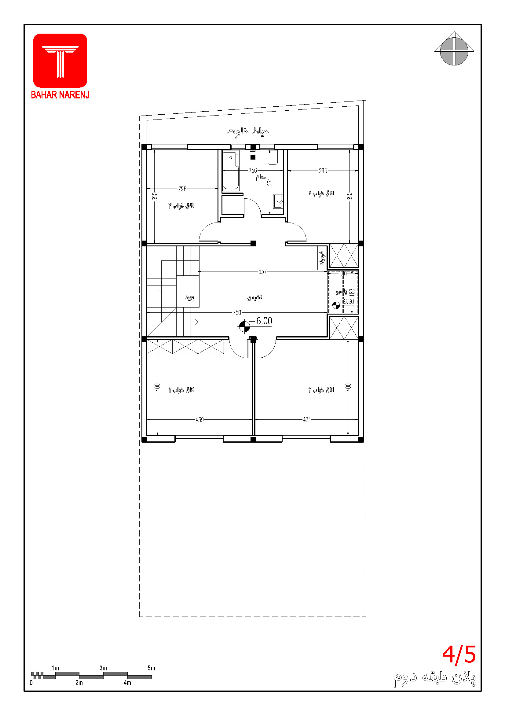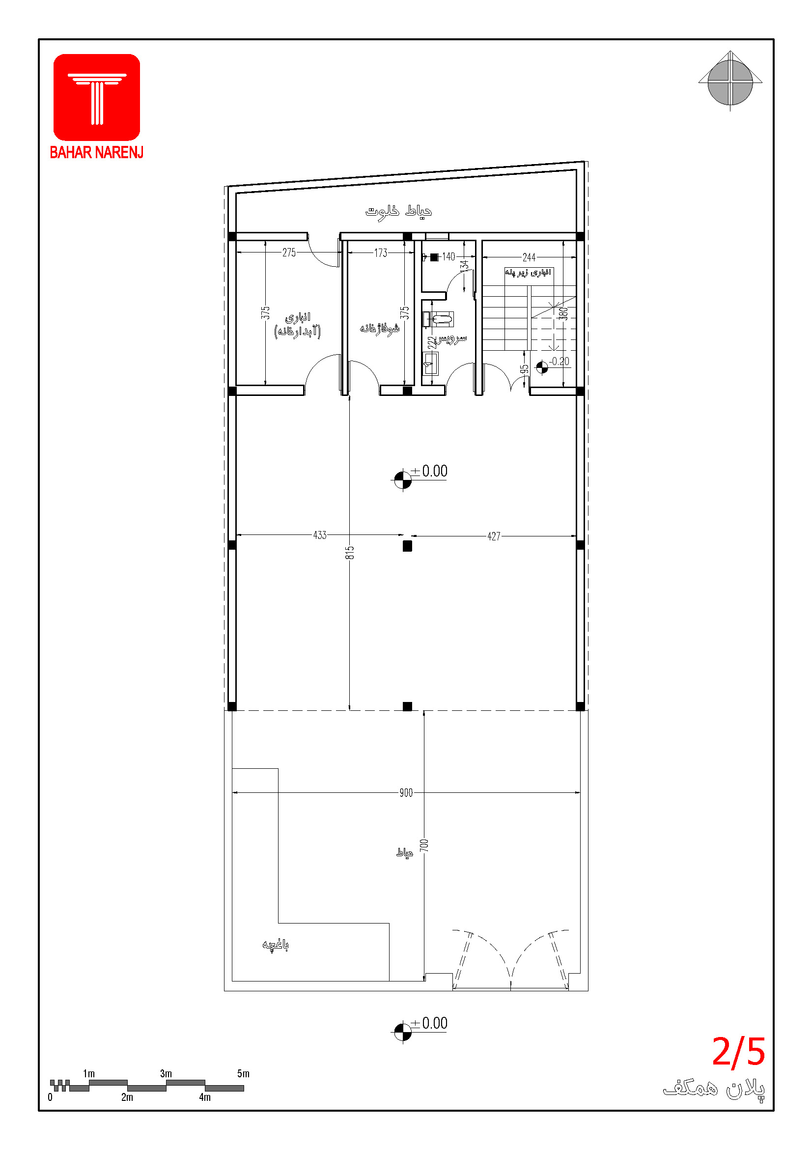 • ساختمان مسکونی دو طبقه روی همکف، با متراژ زیربنا 333 مترمربع و مساحت زمین 199/5 مترمربع، با سقف طاق ضربی است.