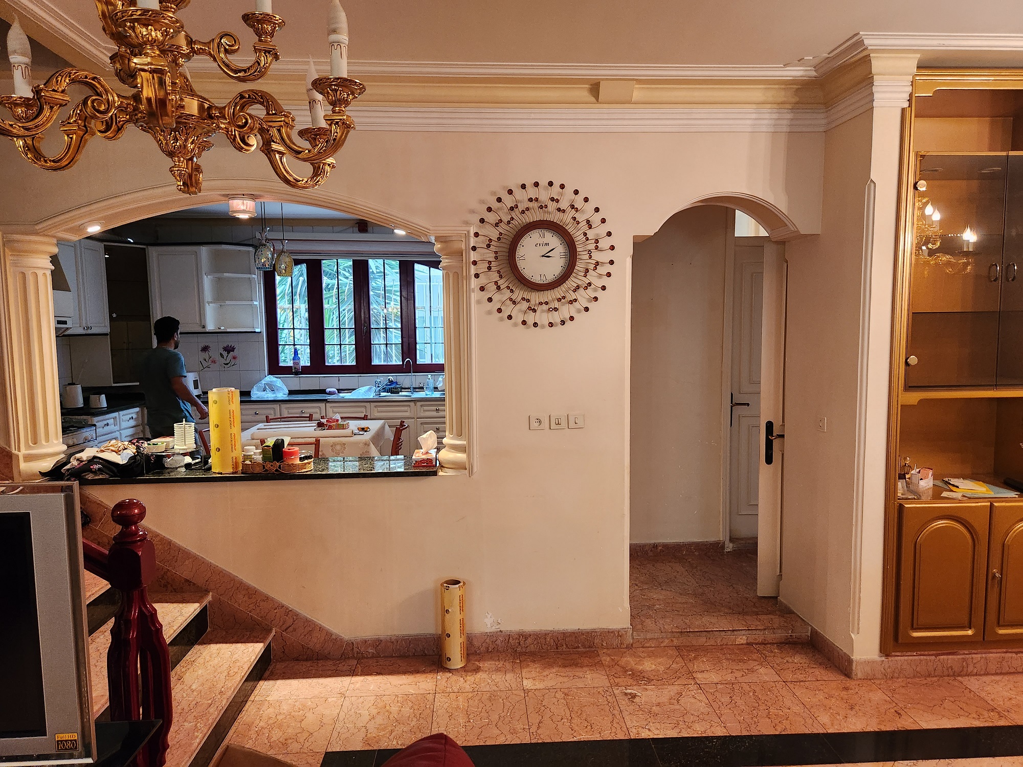 • دیوارهای آشپزخانه کثیف برداشته شود و فضای آن با محوطه و پارکینگ ادغام شود.