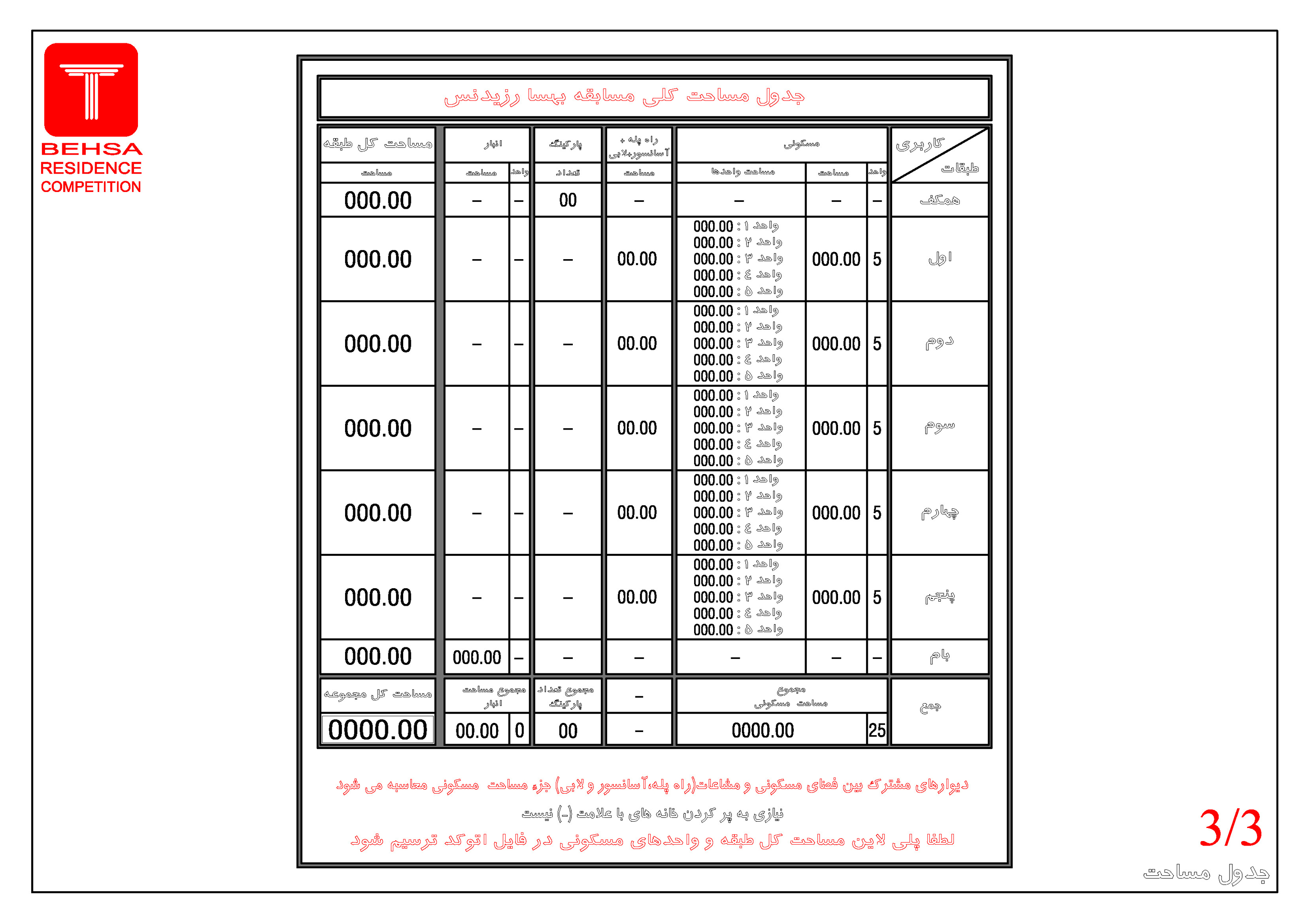 • مساحت واحدهای مسکونی داخل واحدها درج شود.