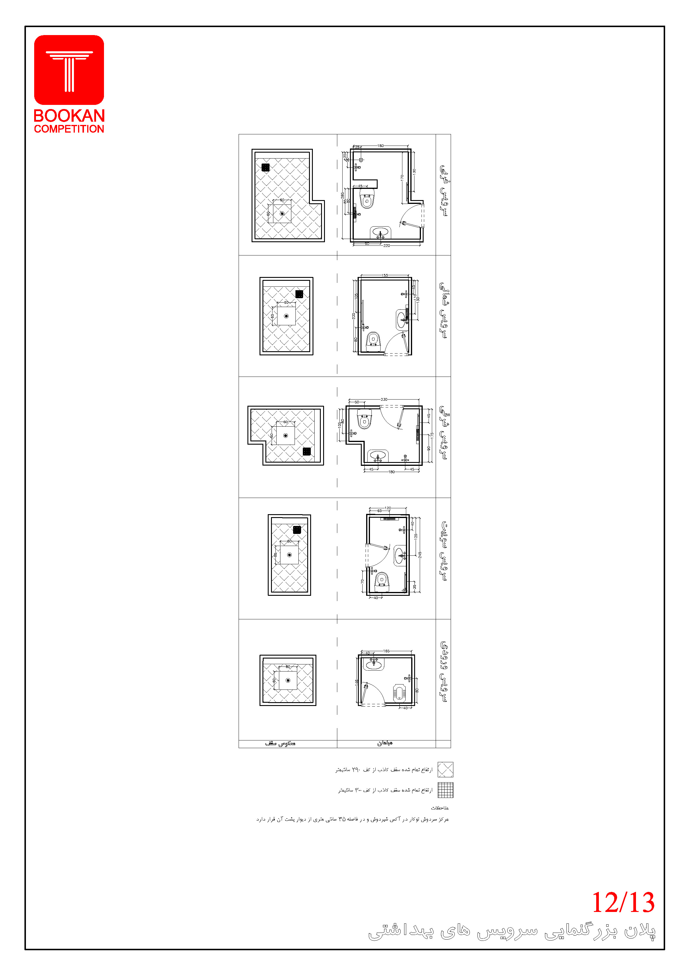 • در مورد سرویس های بهداشتی و آشپزخانه ها به این نکته توجه شود که لوله کشیهای تاسیسات اجرا شده، و اولویت با حفظ تاسیسات موجود است، ولی در صورت پیشنهادات بهینه معماری ، امکان ایجاد تغییرات جزئی وجود دارد.