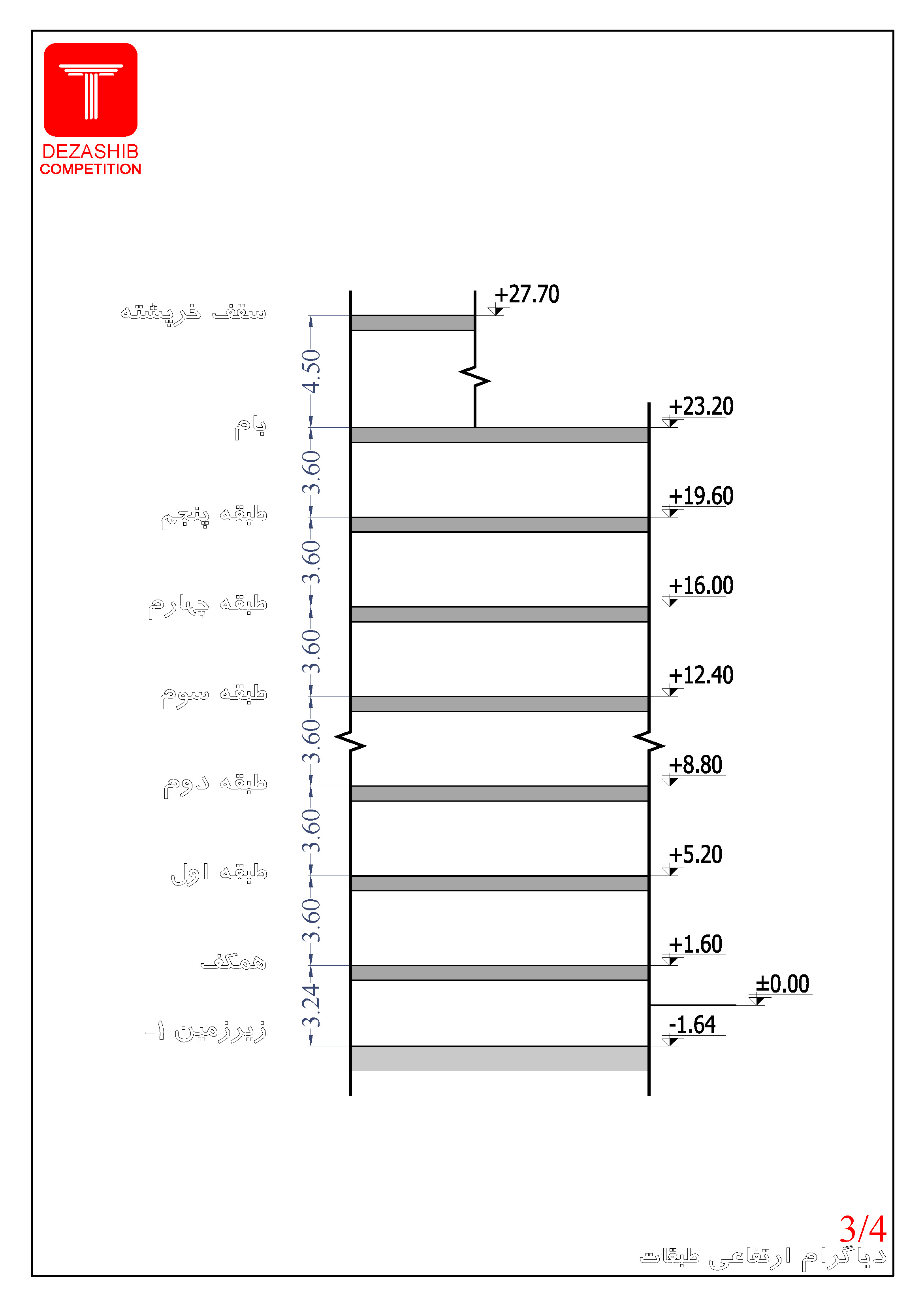• کد ارتفاعی کف طبقه همکف ۱6۰ سانتی متر بالاتر از کد صفر در نظر گرفته شود.