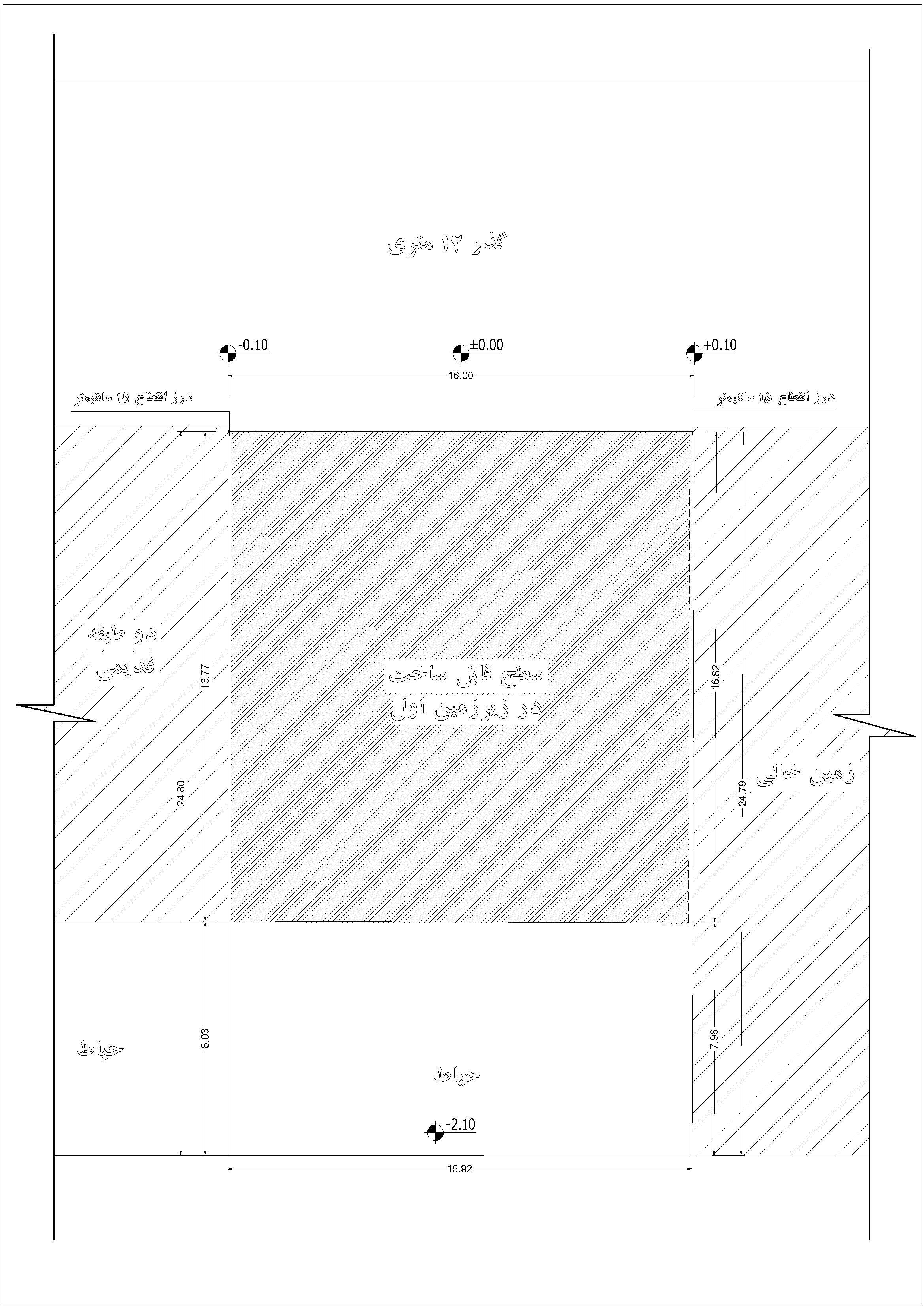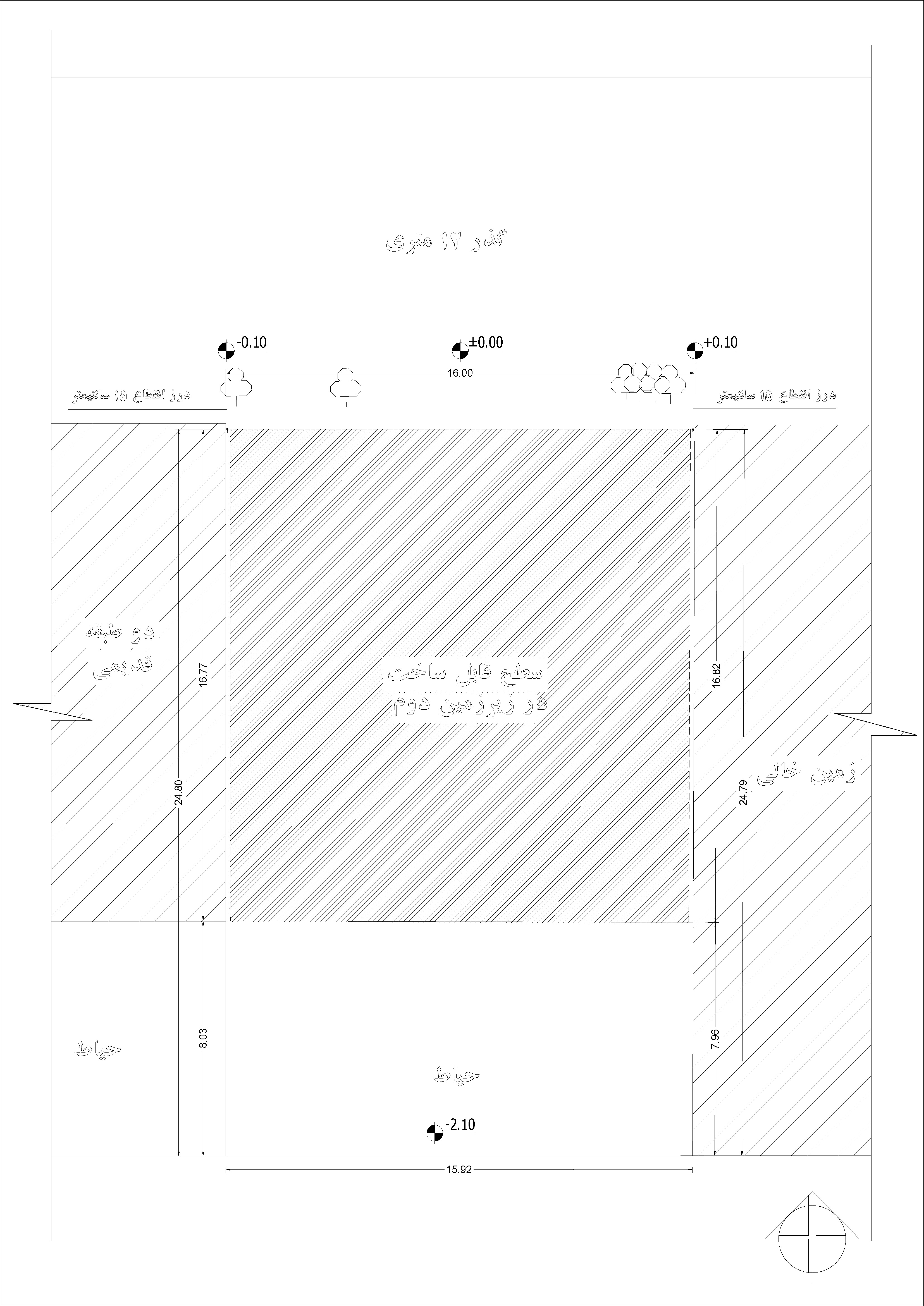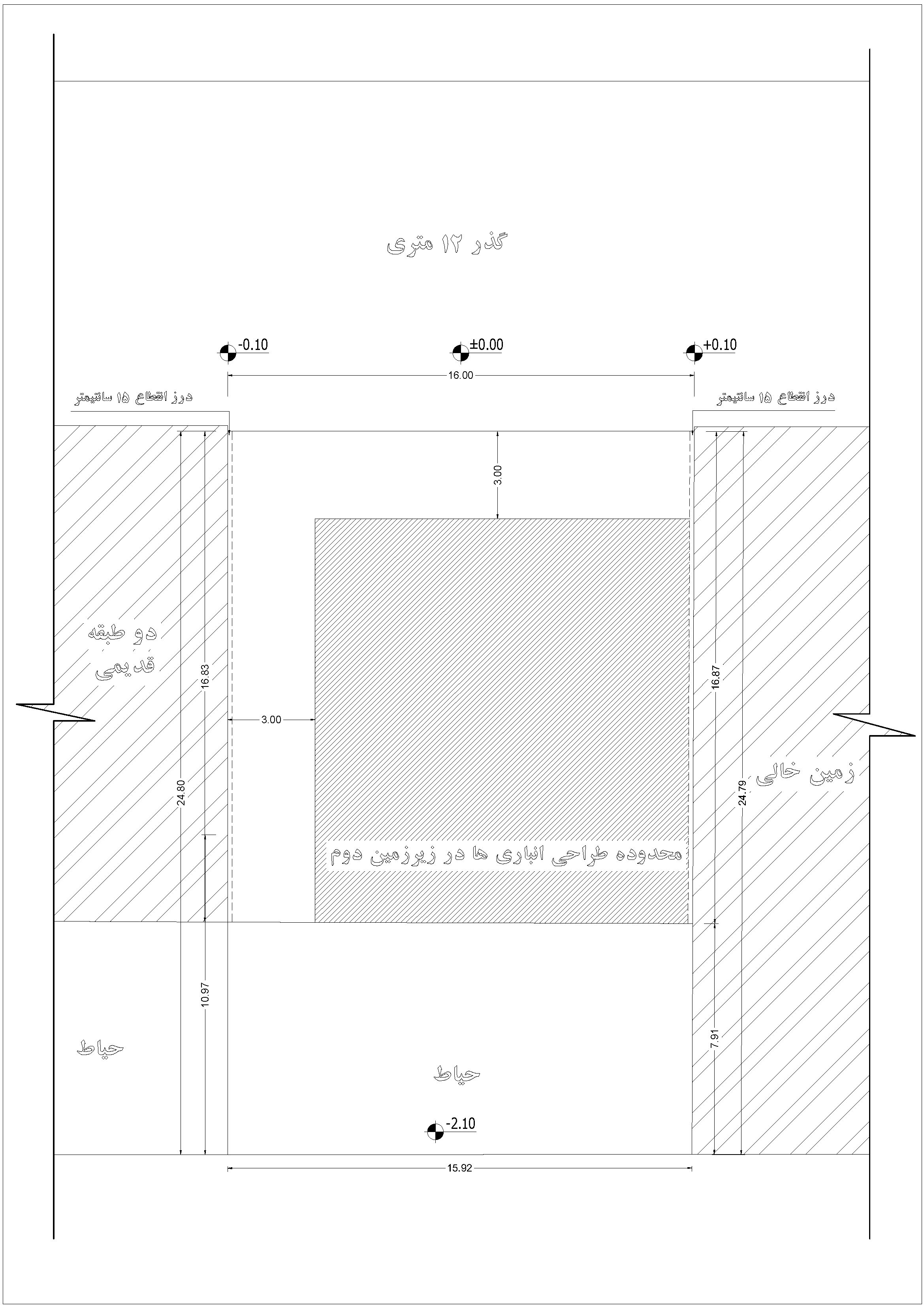 • دیوار زیرزمین دوم در ضلع غرب حداقل 3 متر از ملک همسایه و دیوار شمال حداقل 3 متر از گذر فاصله داشته باشد.