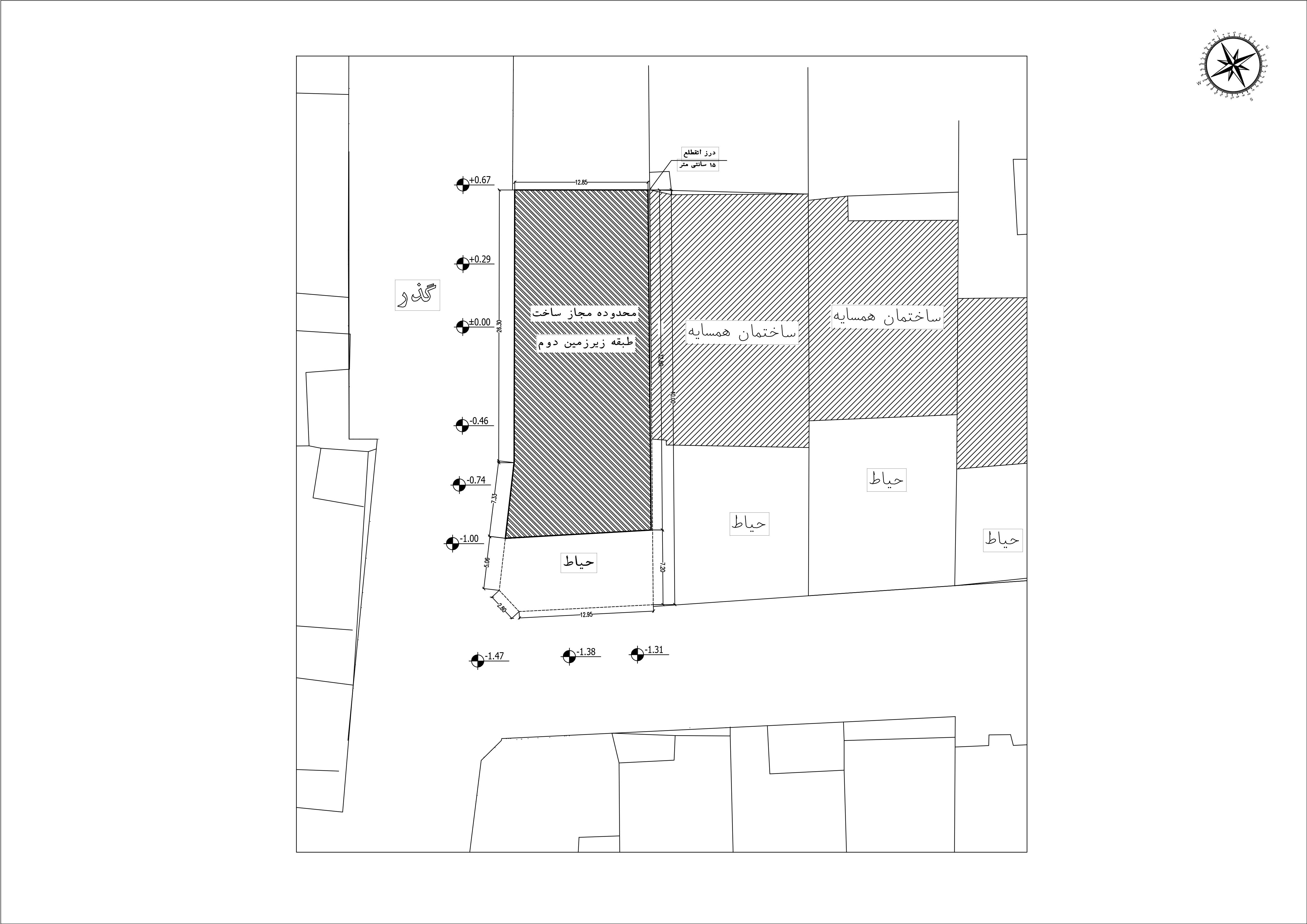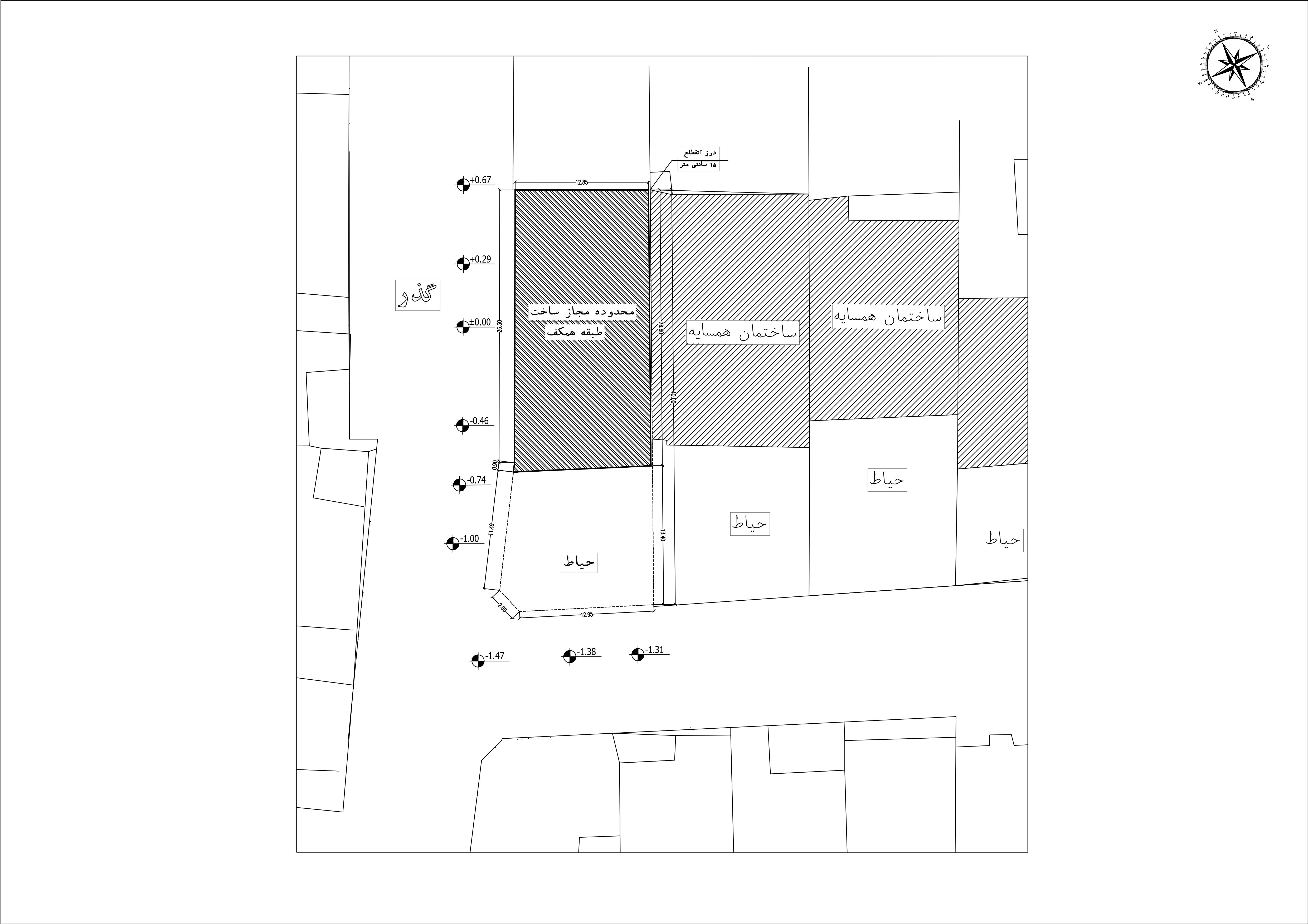 • حداکثر تراز ارتفاعی طبقه همکف 1/20+ متر در نظر گرفته شود.