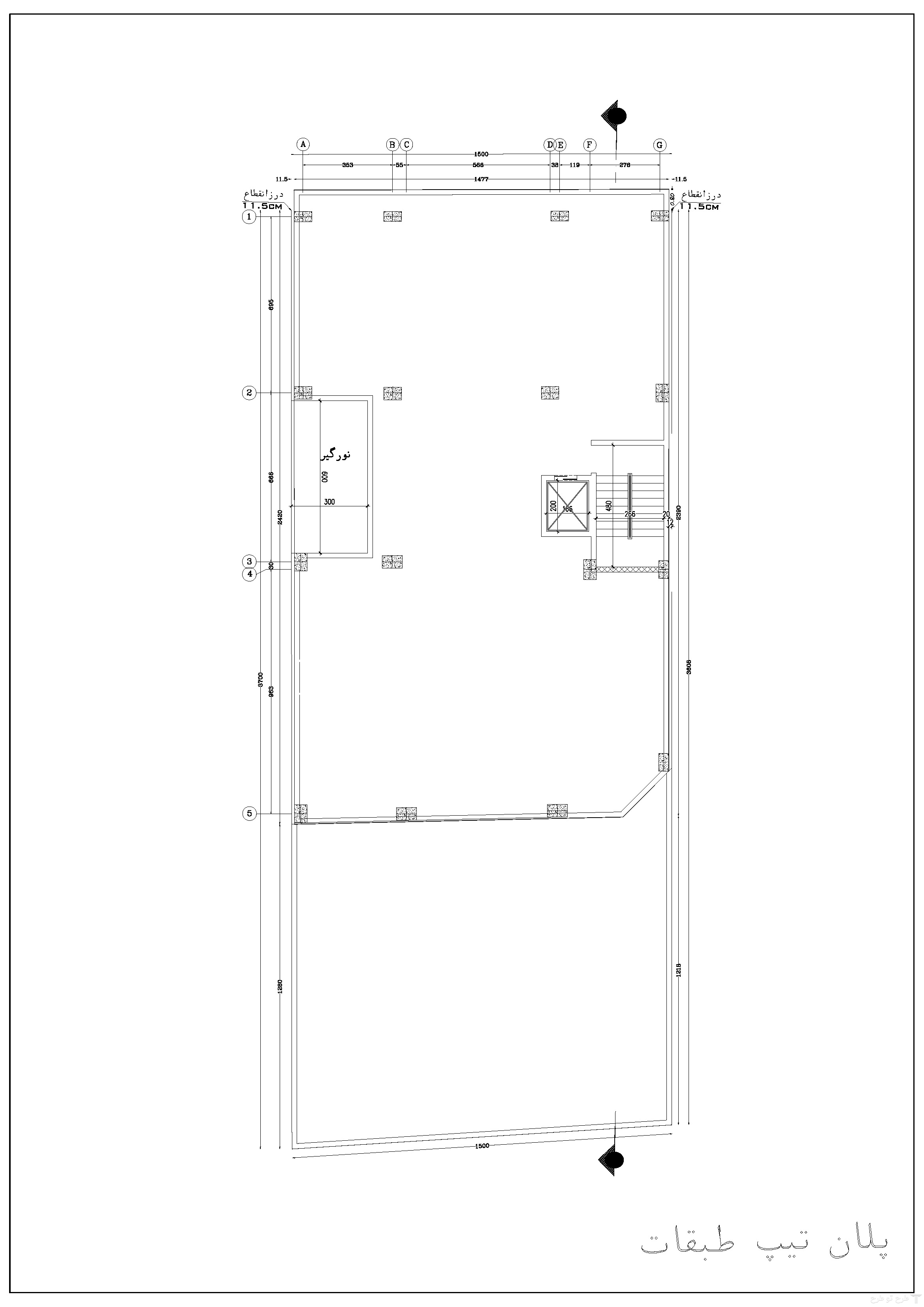 • اسکلت ساختمان اجرا شده است و موقعیت راه پله، آسانسور و نورگیر مطابق با فایل اتوکد پیوست می باشد.