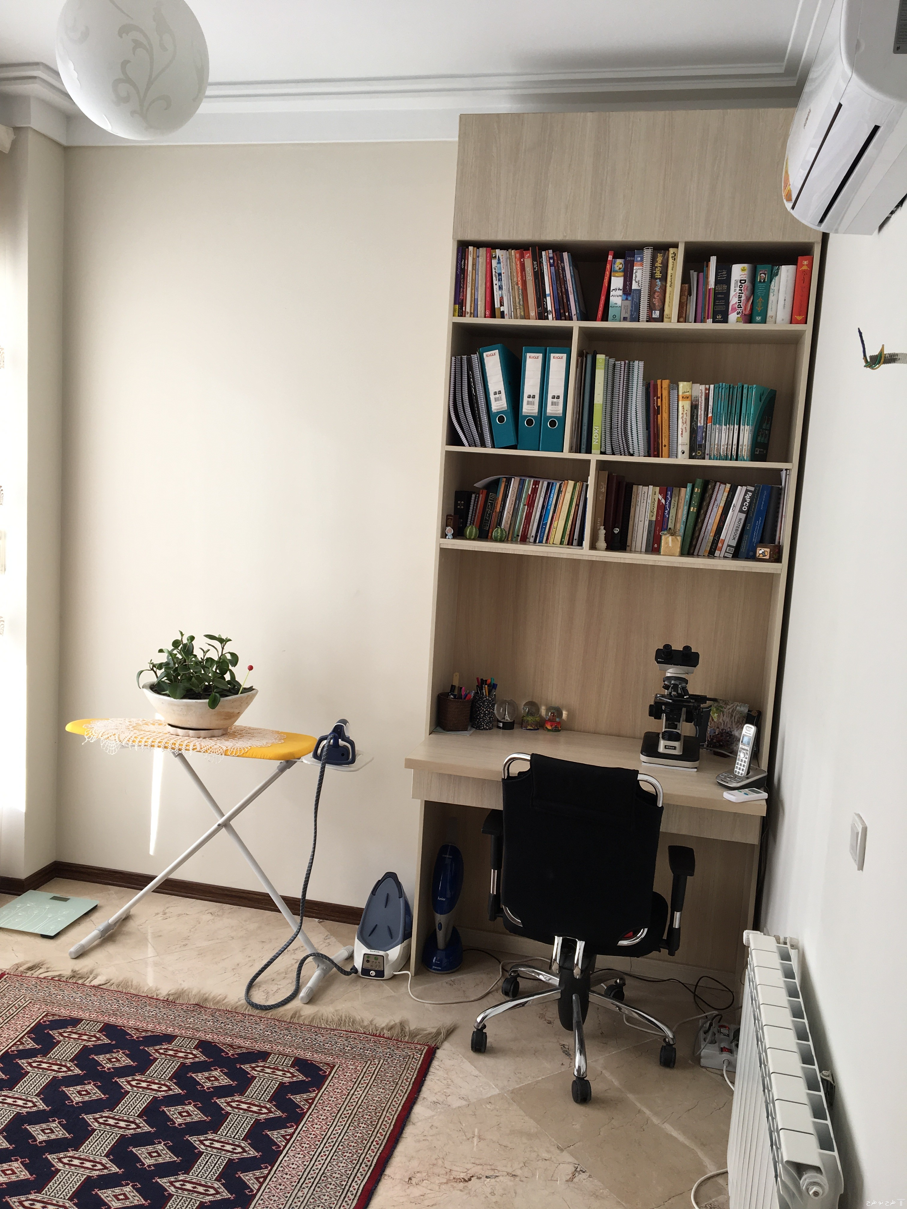 در حال حاضر اتاق مورد نظر به عنوان اتاق کار استفاده می شود. با توجه به در پیش بودن تولد فرزندمان و با هدف چیدمان بهینه تر وسایل می خواهیم اتاق طراحی شود.
