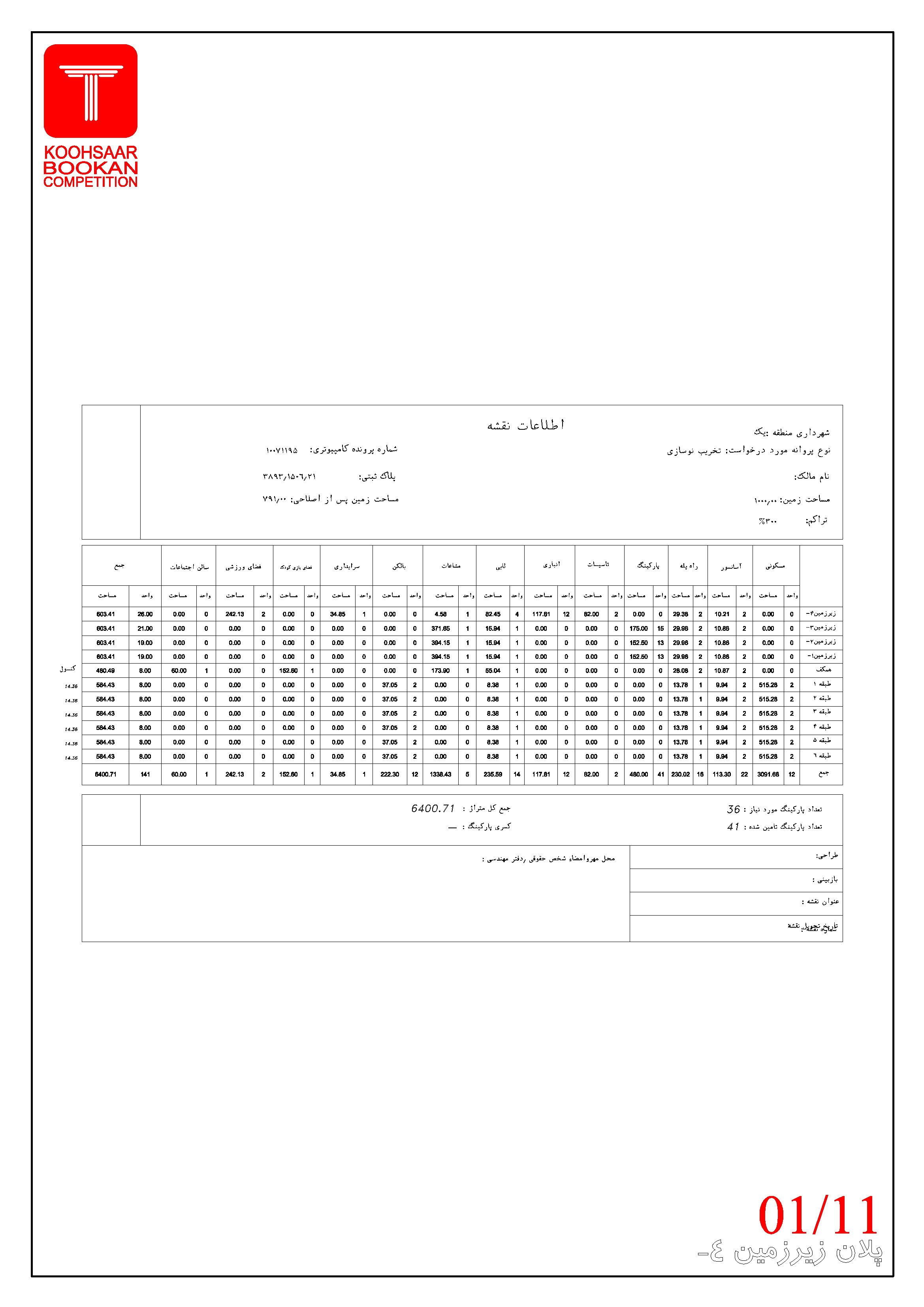 • در پارکینگ ها امکان ارائه طرح سقف به صورت اکسپوز و یا استفاده از مصالح غیر از کناف وجود دارد.