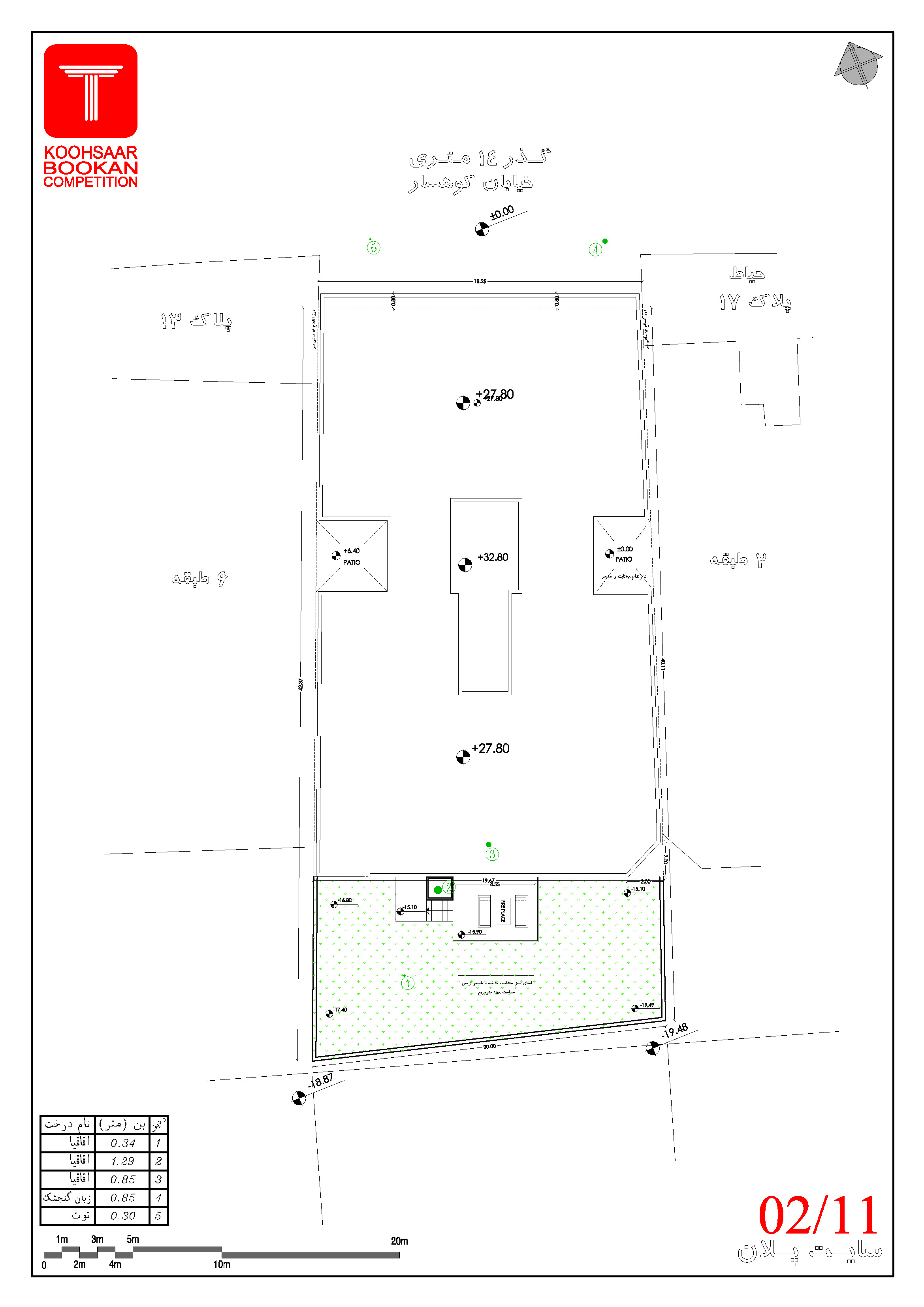 • پلان مبلمان و اندازه گذاری محوطه سازی و فضای سبز (حیاط جنوبی) با فرمت JPG
