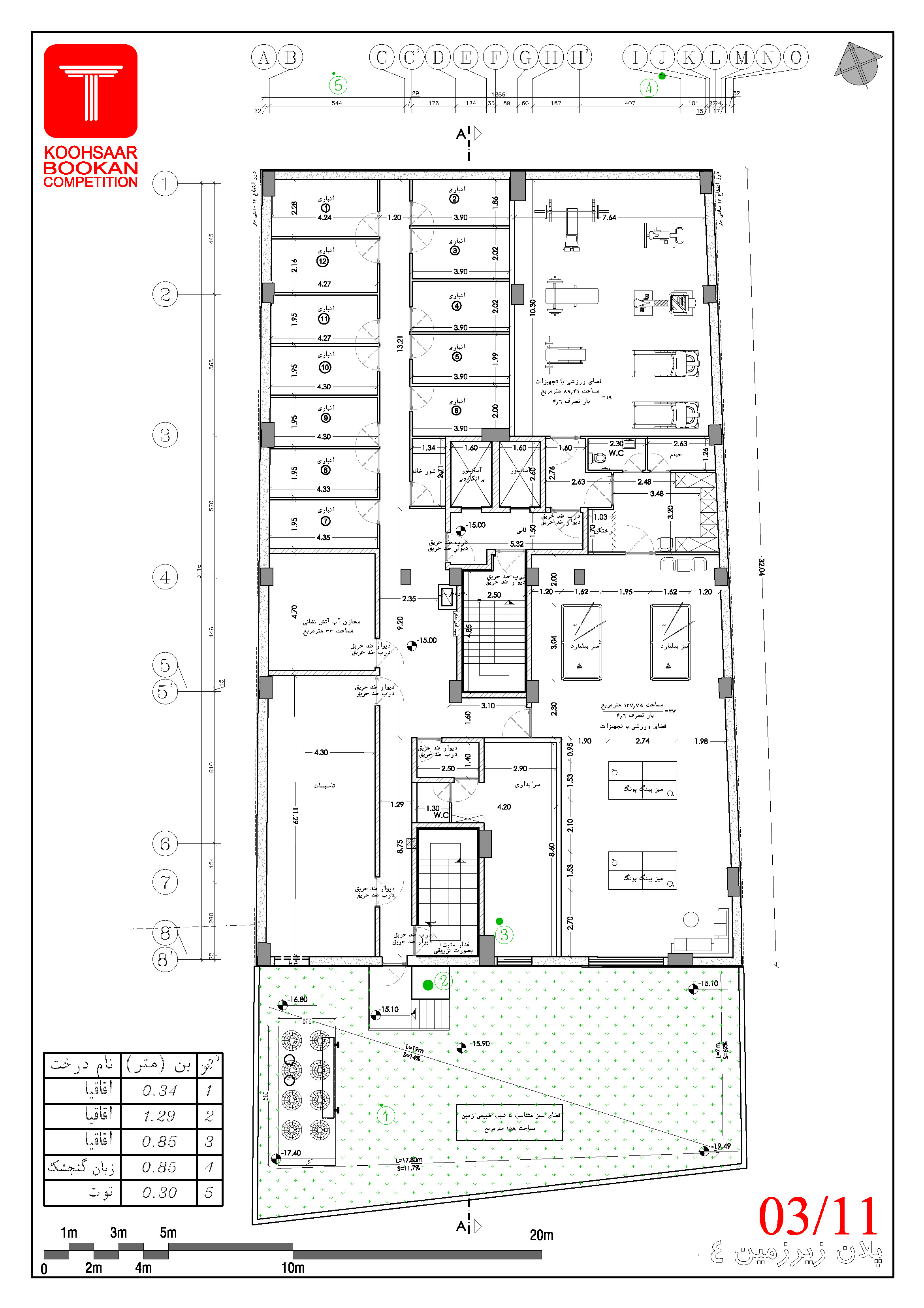 • پلان مبلمان و اندازه گذاری سالن ورزشی و سالن چند منظوره (زیرزمین 4) با فرمت JPG