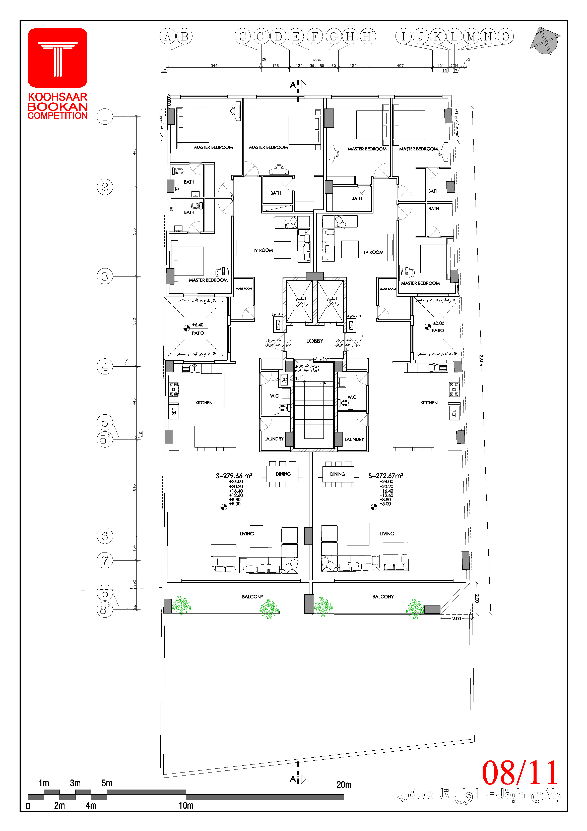 • تاسیسات ساختمان طراحی شده است. ولی تعیین محل مبلمان سرویس های بهداشتی و آشپزخانه ها با توجه به طرح،‌ به اختیار طراح است.