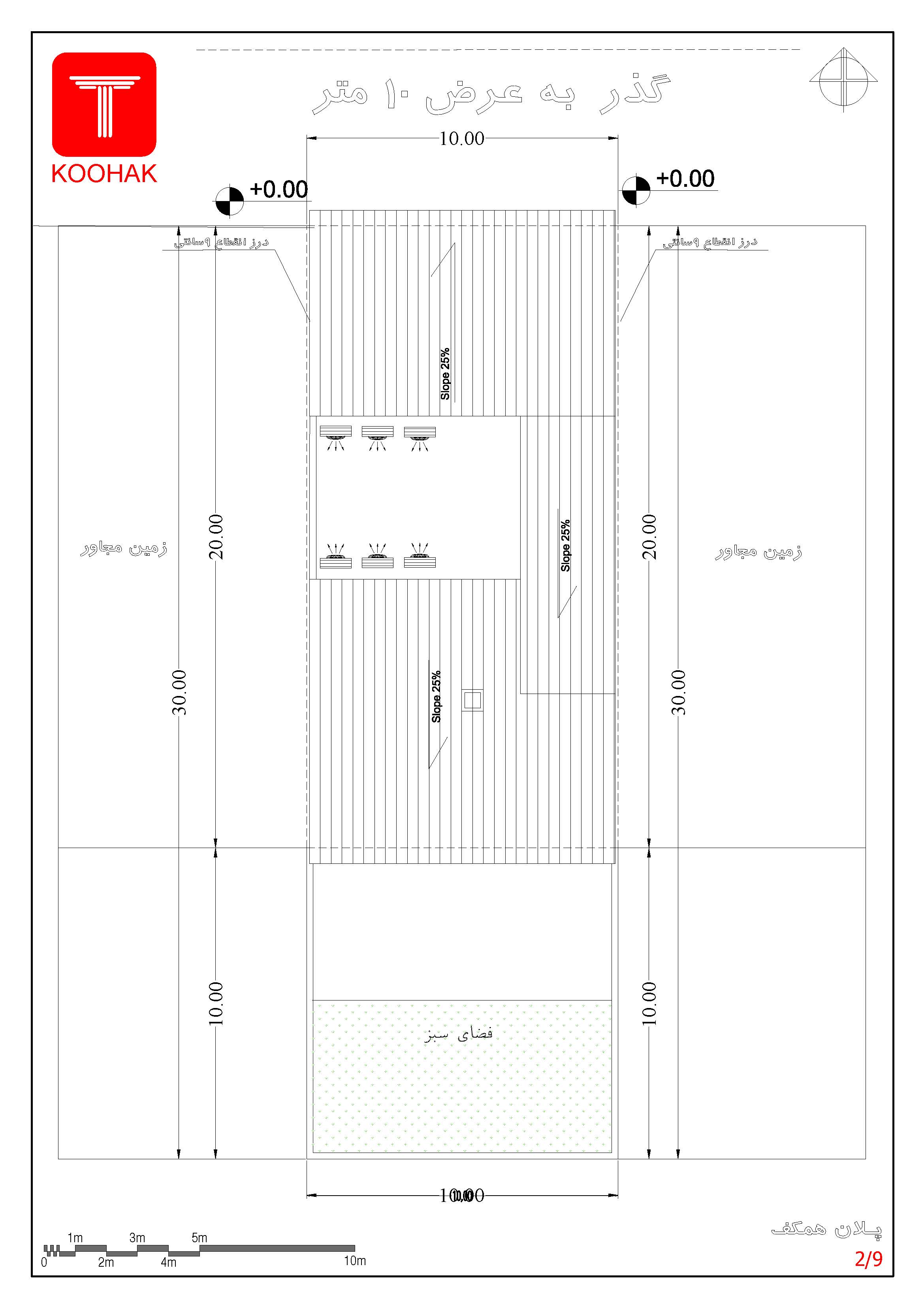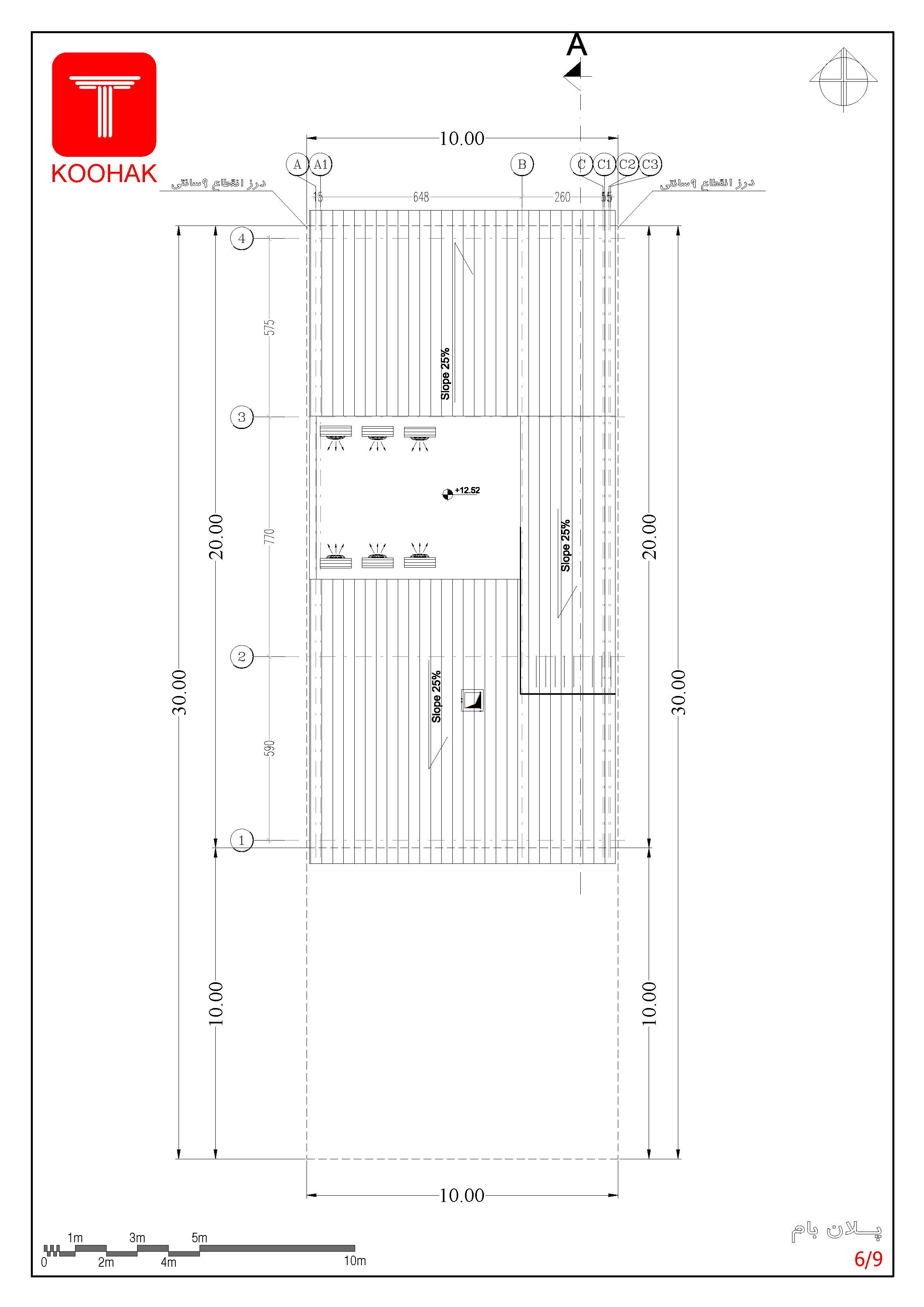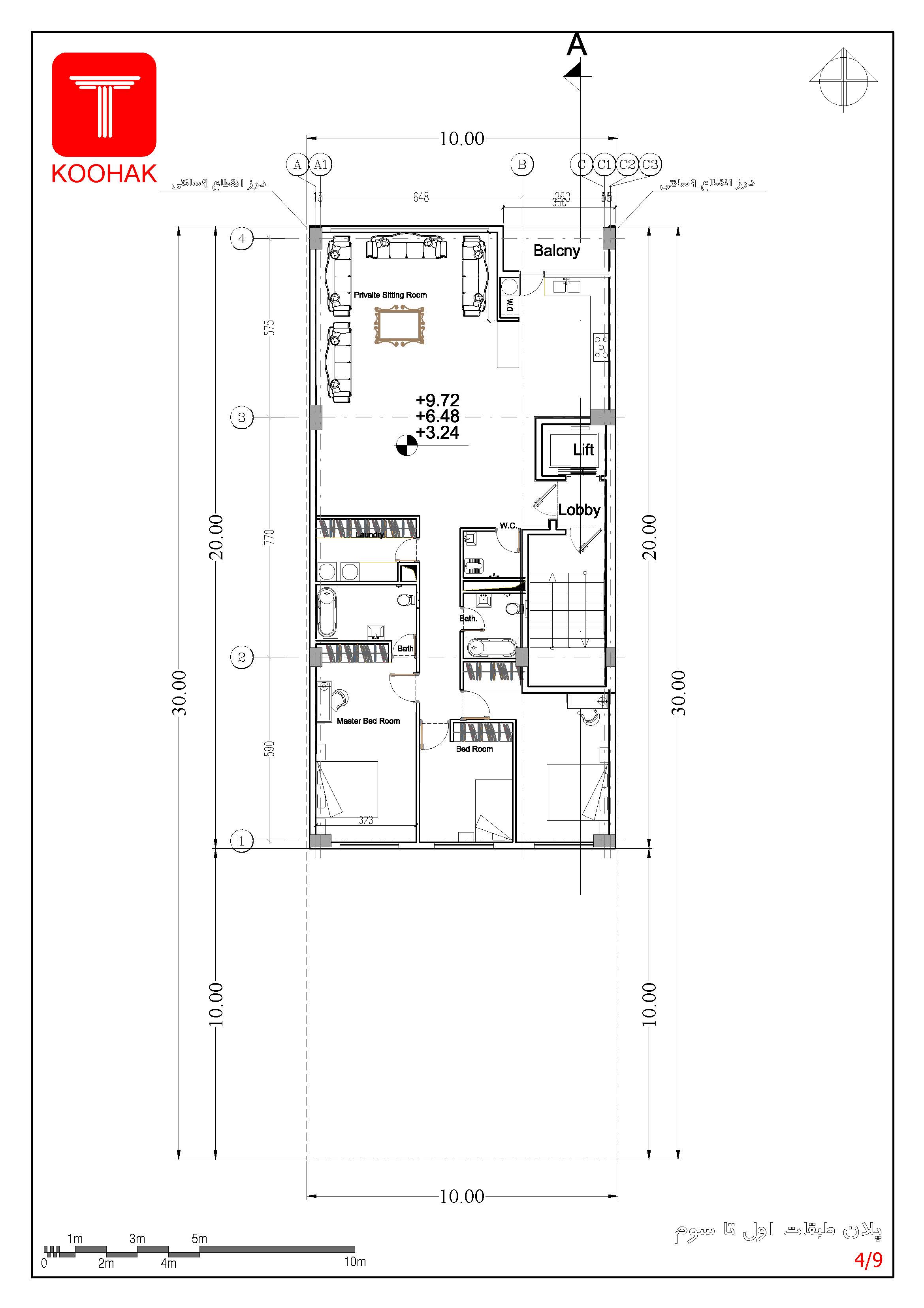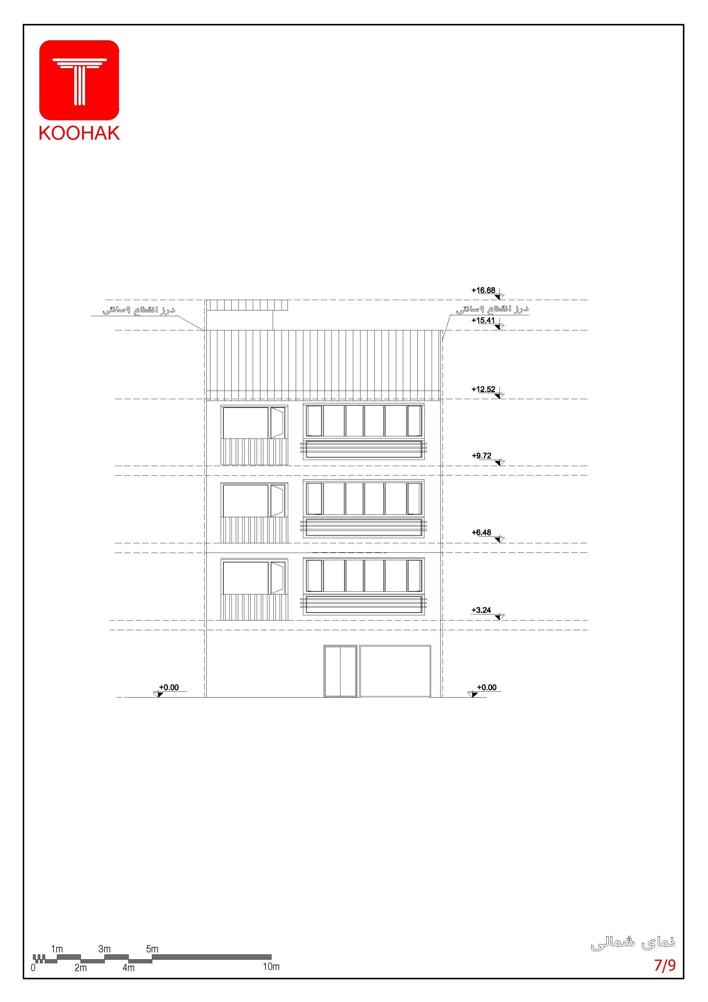 • کدهای ارتفاعی در تمامی پلانها، نماها و مقاطع درج شود.