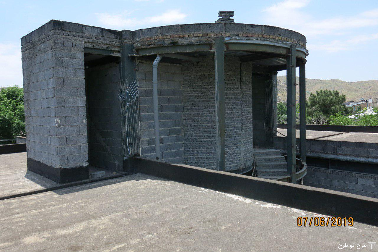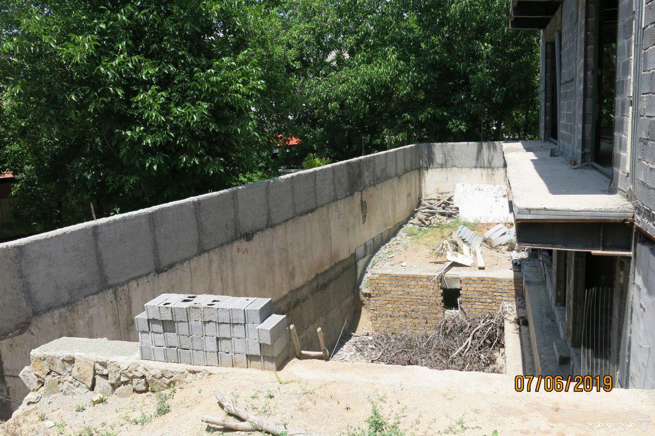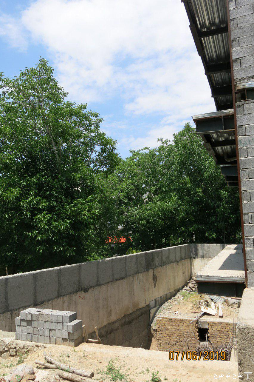 در پلان، استخر در سمت غرب با سایت موتورخانه (فضای نقطه چین بالای استخر) تداخل دارد. لذا در طراحی به آن توجه گردد