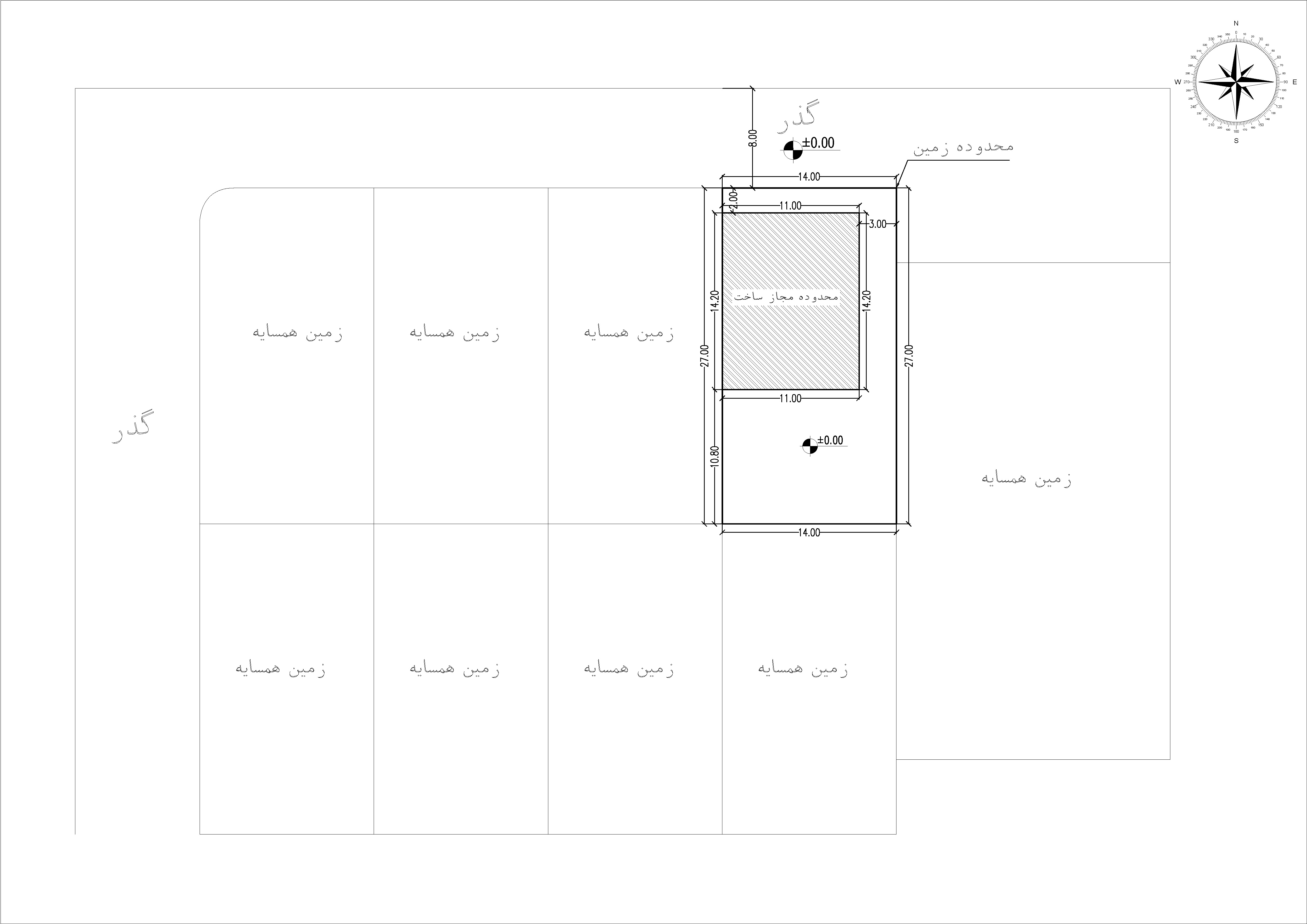 • رعایت حریمها برای جانمایی ویلا الزامی است. (از ضلع شمال 2 متر و از ضلع شرق 3 متر)