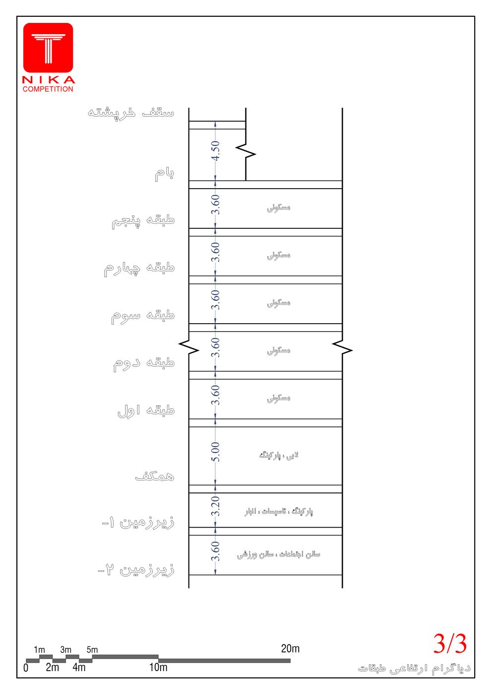• تعداد طبقات بصورت 2 طبقه زیرزمین، همکف و 5 طبقه مسکونی روی همکف .