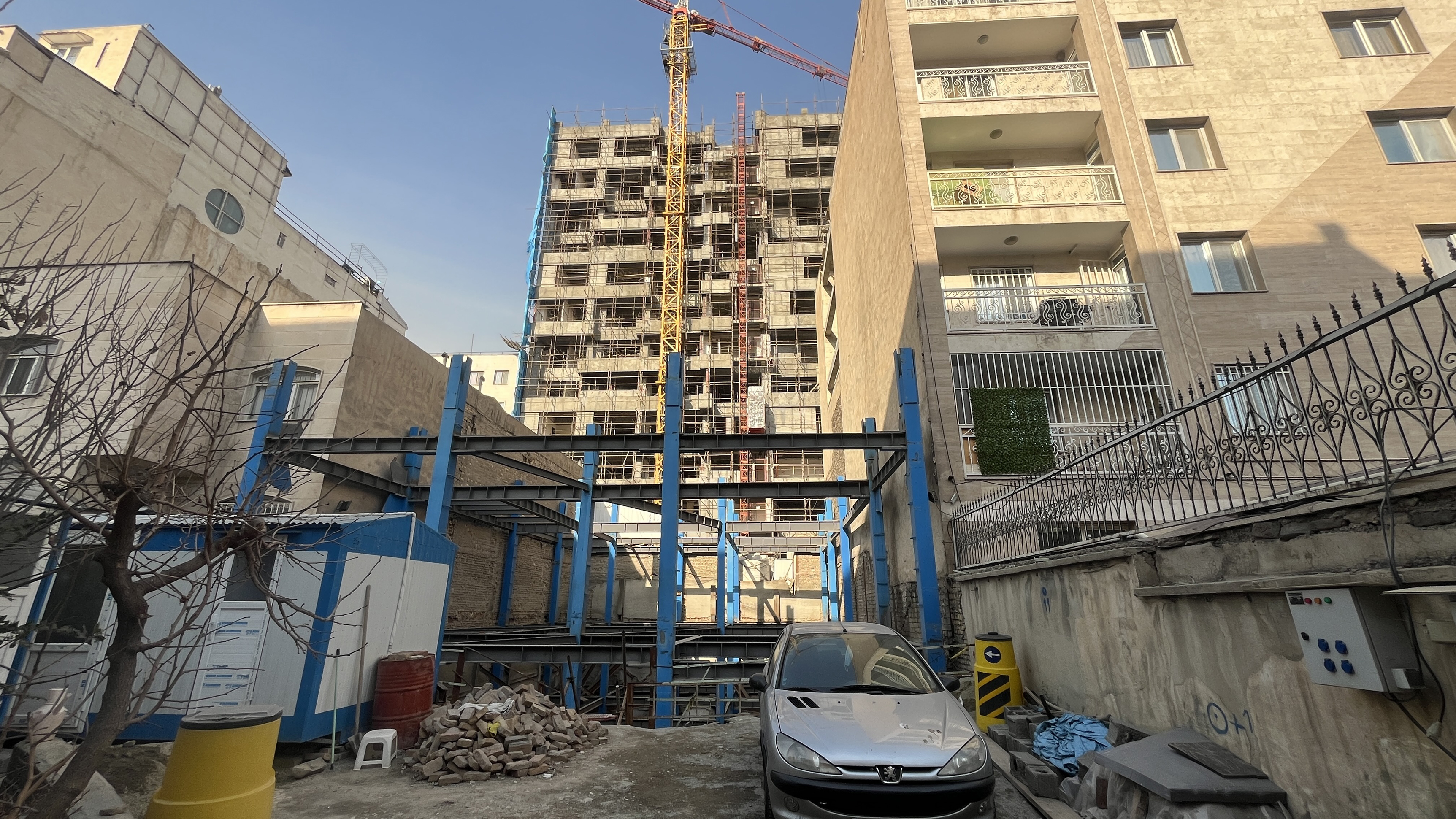 • وضعیت کنونی، اجرای 3 طبقه تیر و ستون اسکلت فلزی است.