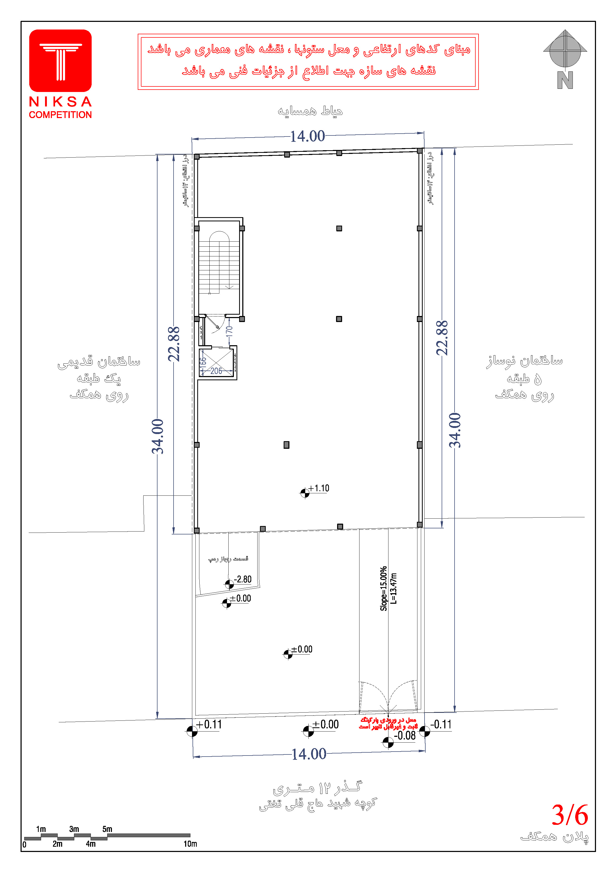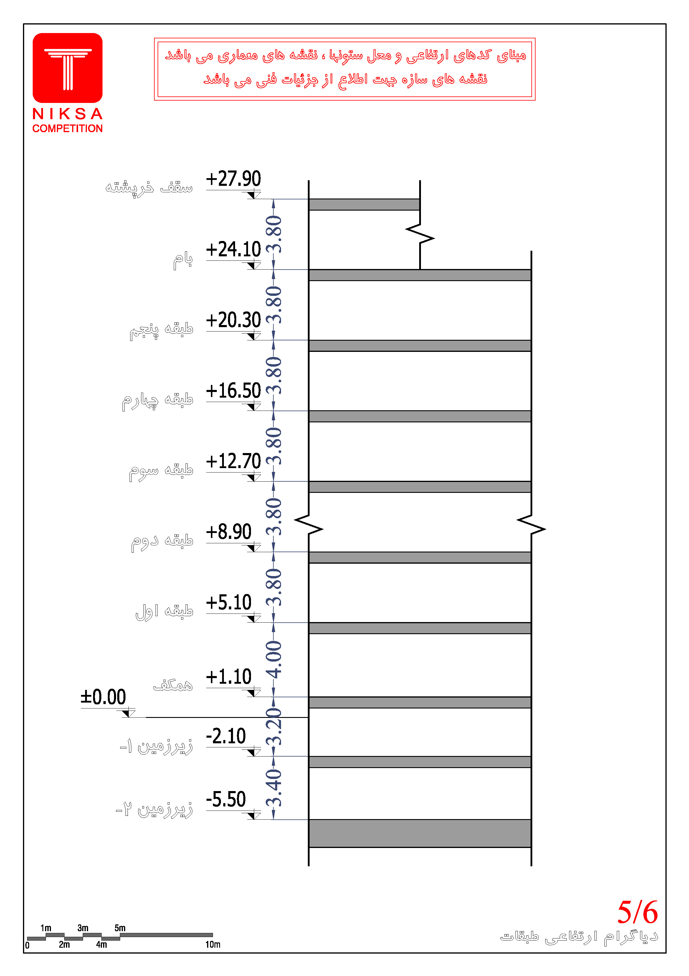 • مبنای کدهای ارتفاعی و محل ستونها، نقشههای معماری میباشد. نقشههای سازه جهت اطلاع از جزئیات فنی میباشد.
