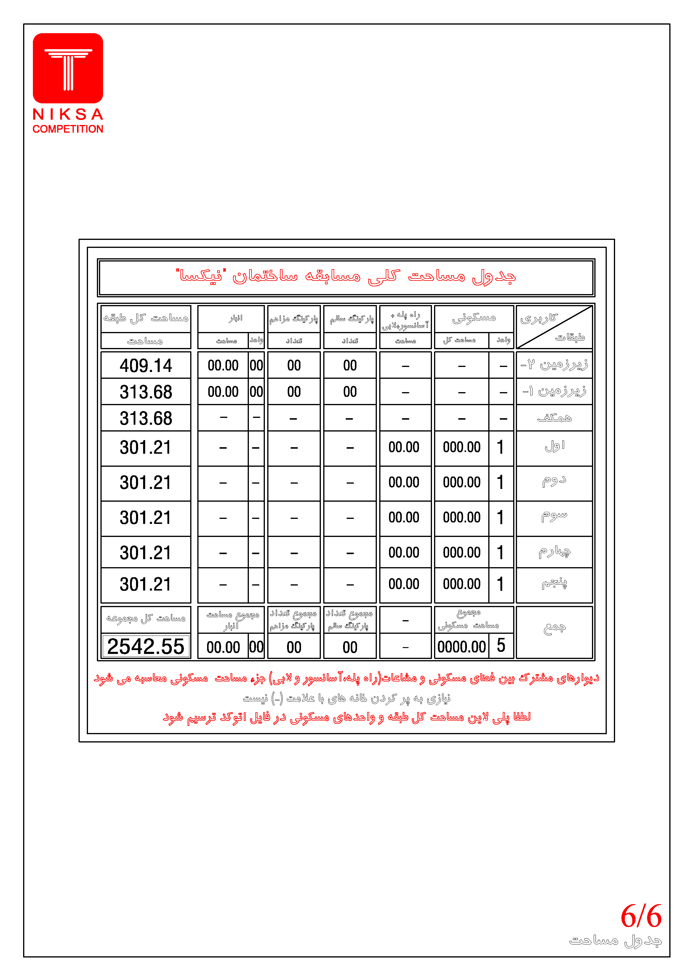 • پیش بینی هر فضای دیگر به غیر از موارد خواسته شده کارفرما، به اختیار طراح میباشد.