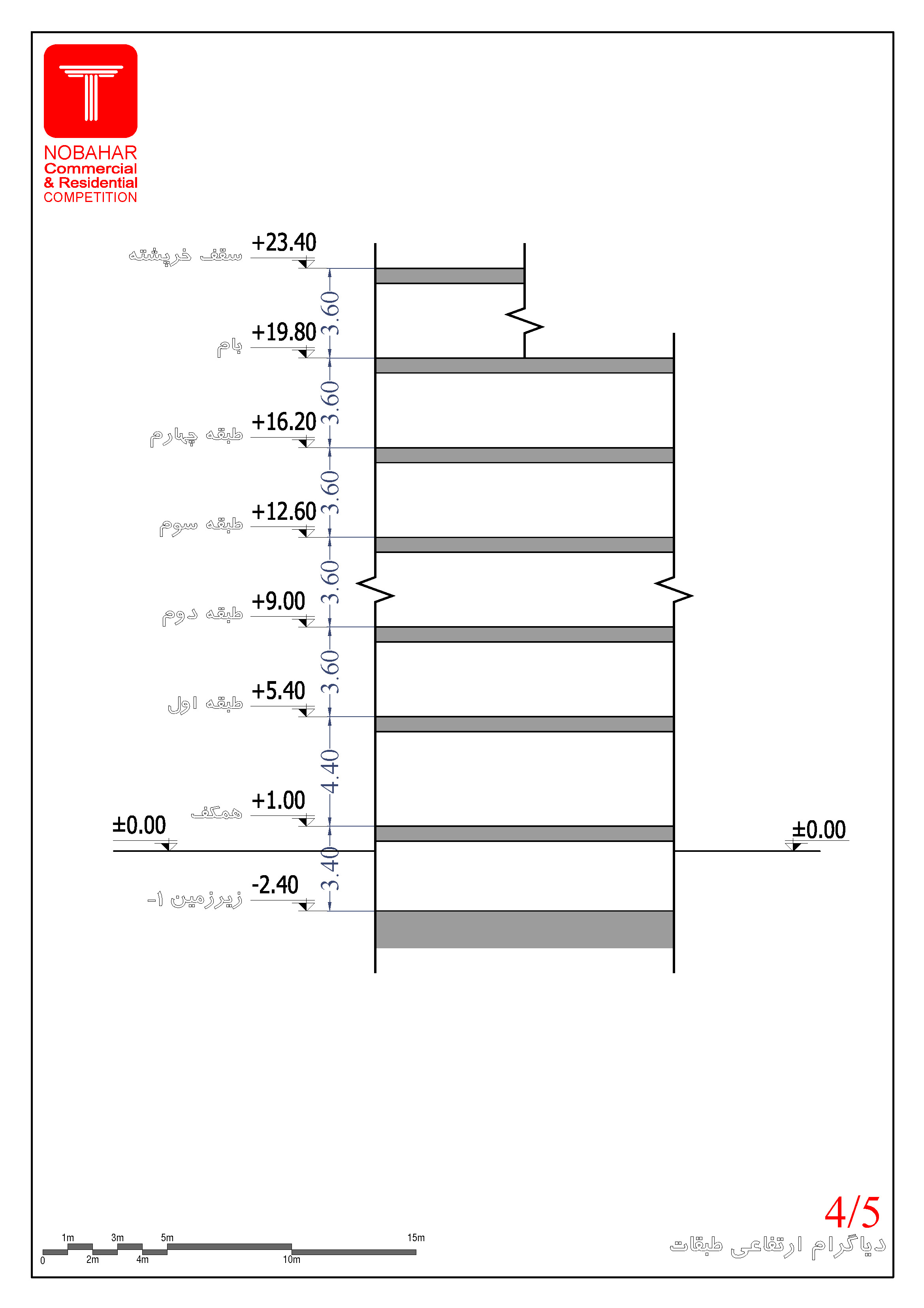 درج کدهای ارتفاعی در تمام پلانها، نماها و مقاطع