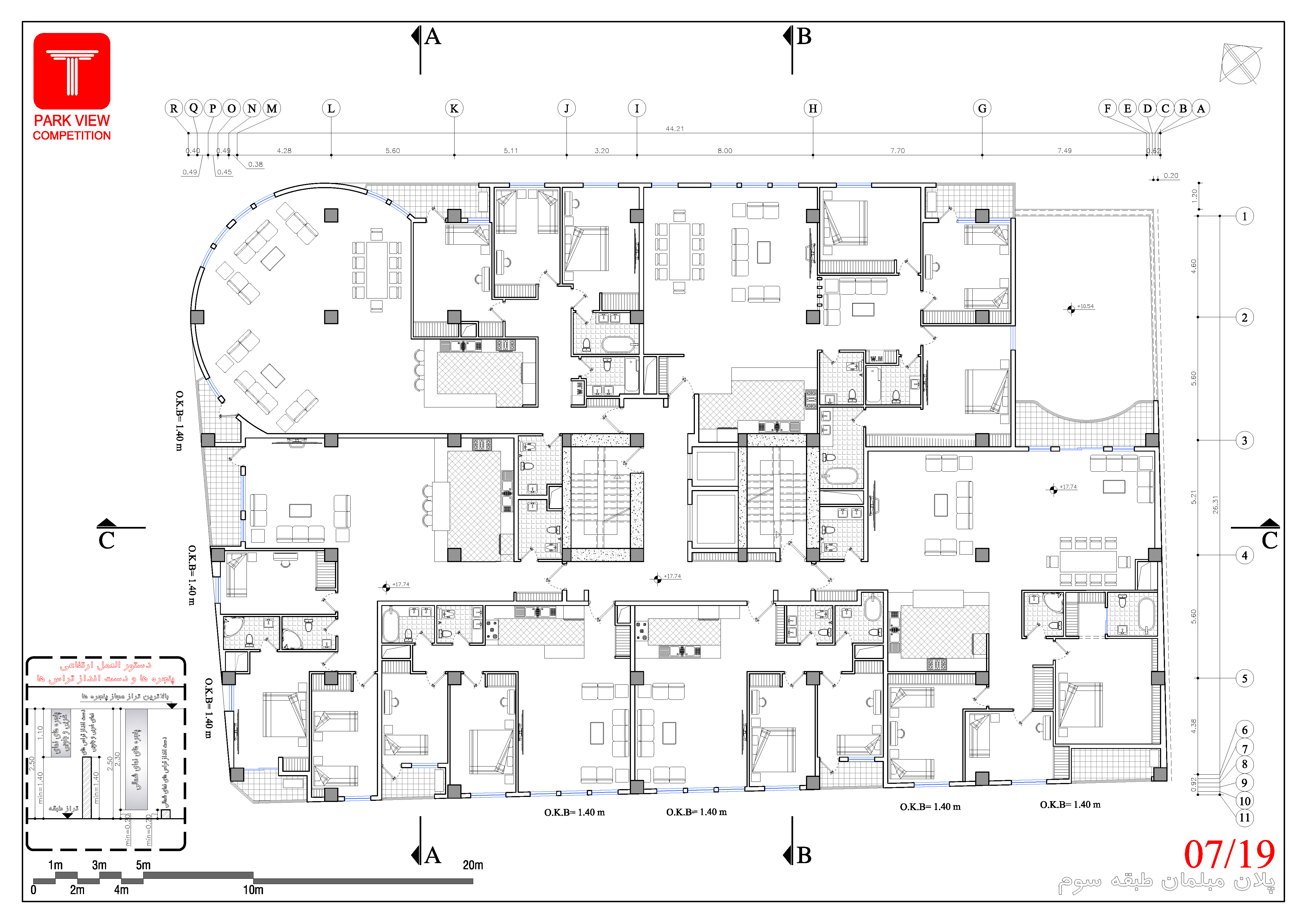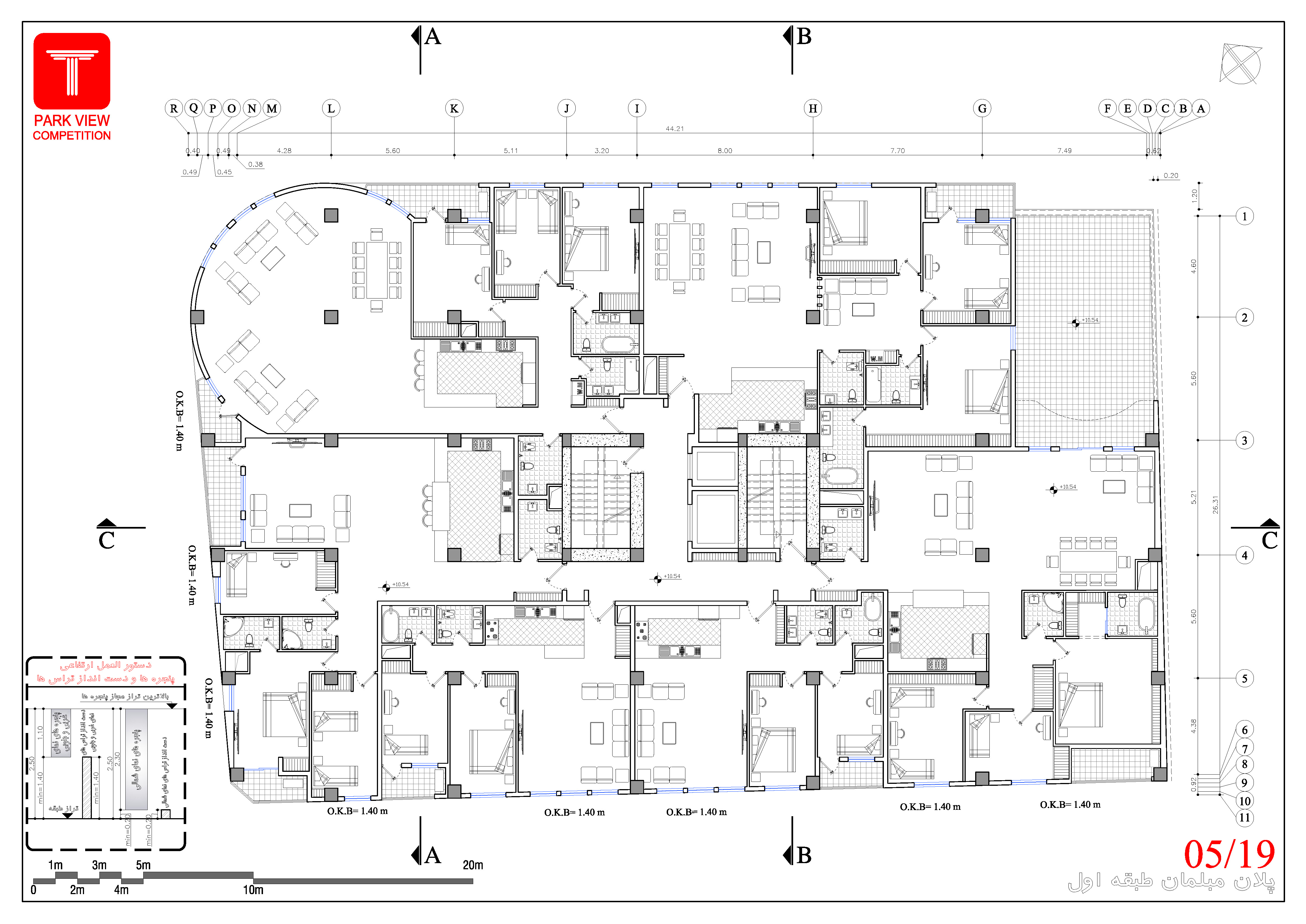 • Polyline مساحت کل طبقات و واحدهای مسکونی بر روی خود نقشه و در لایه جداگانه ترسیم شود.