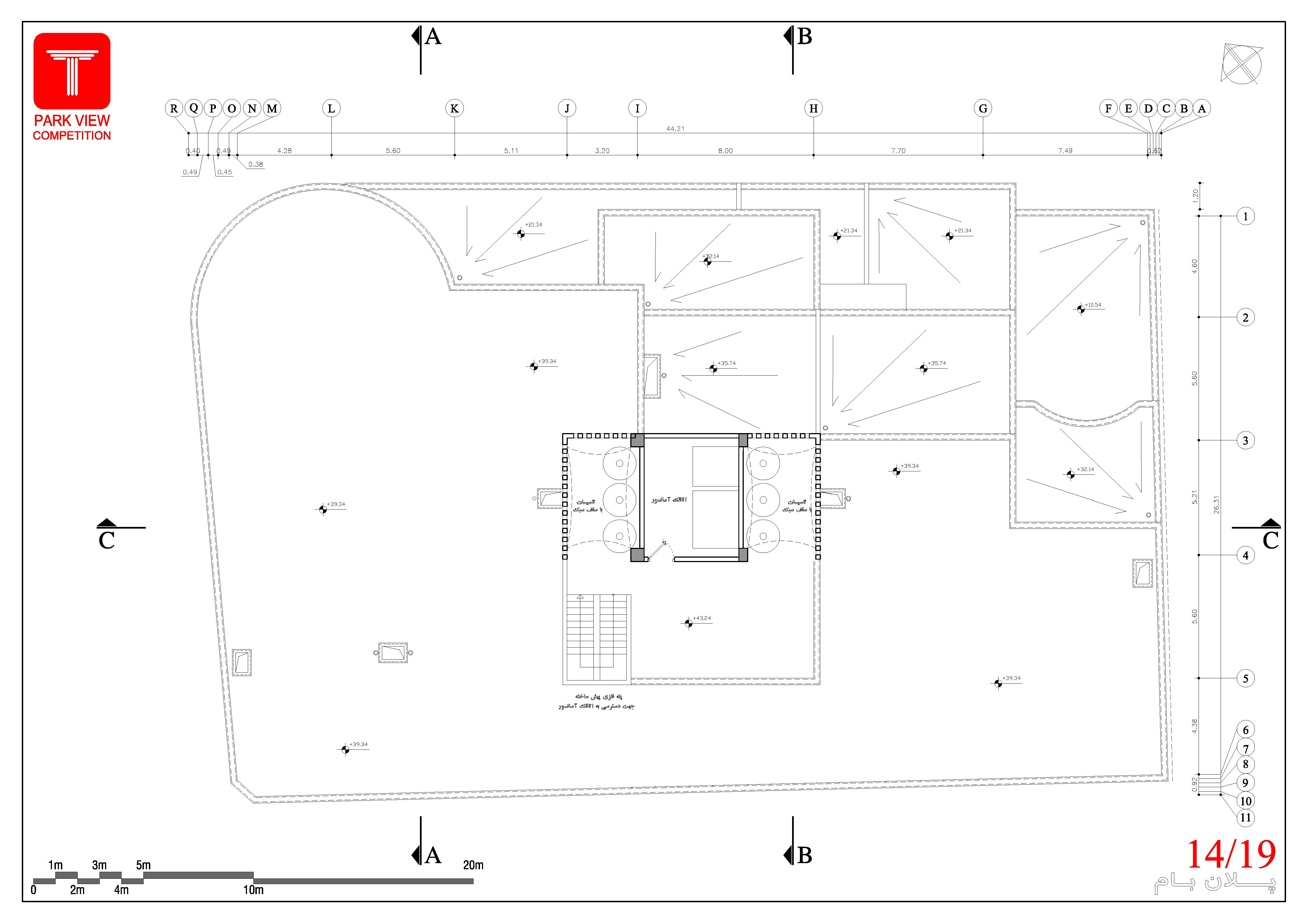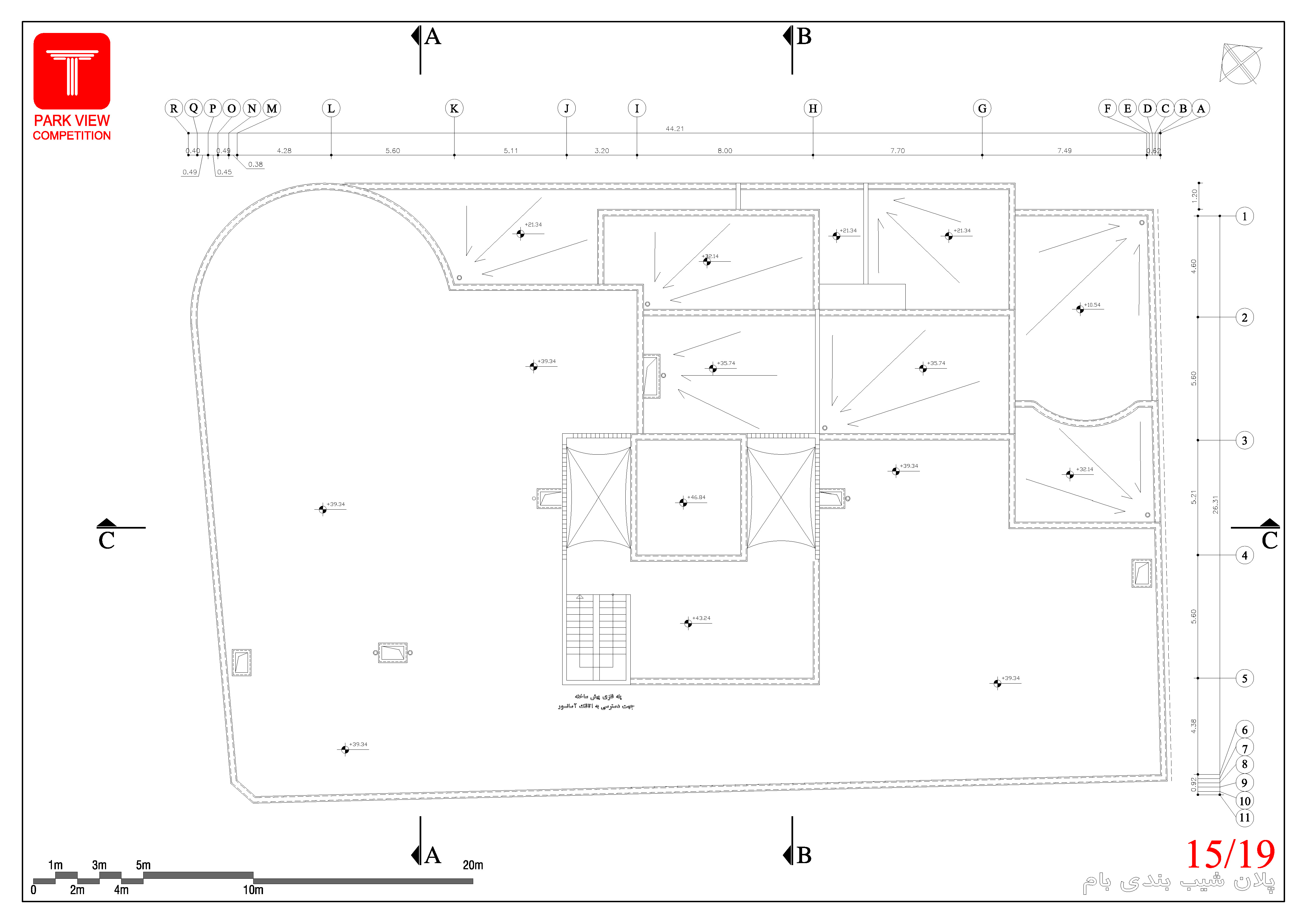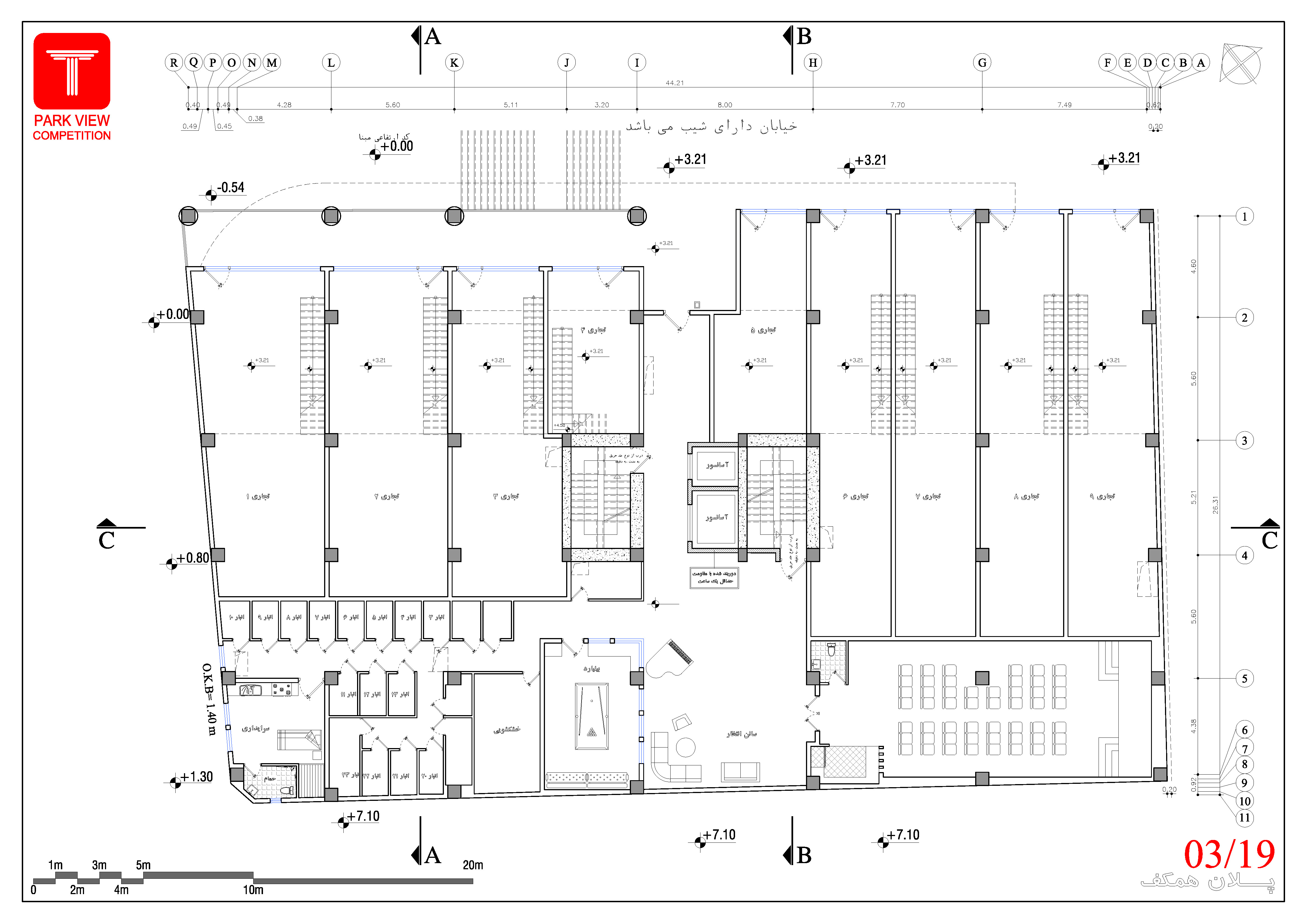 • کدهای ارتفاعی در تمامی پلانها، نماها و مقاطع درج شود.