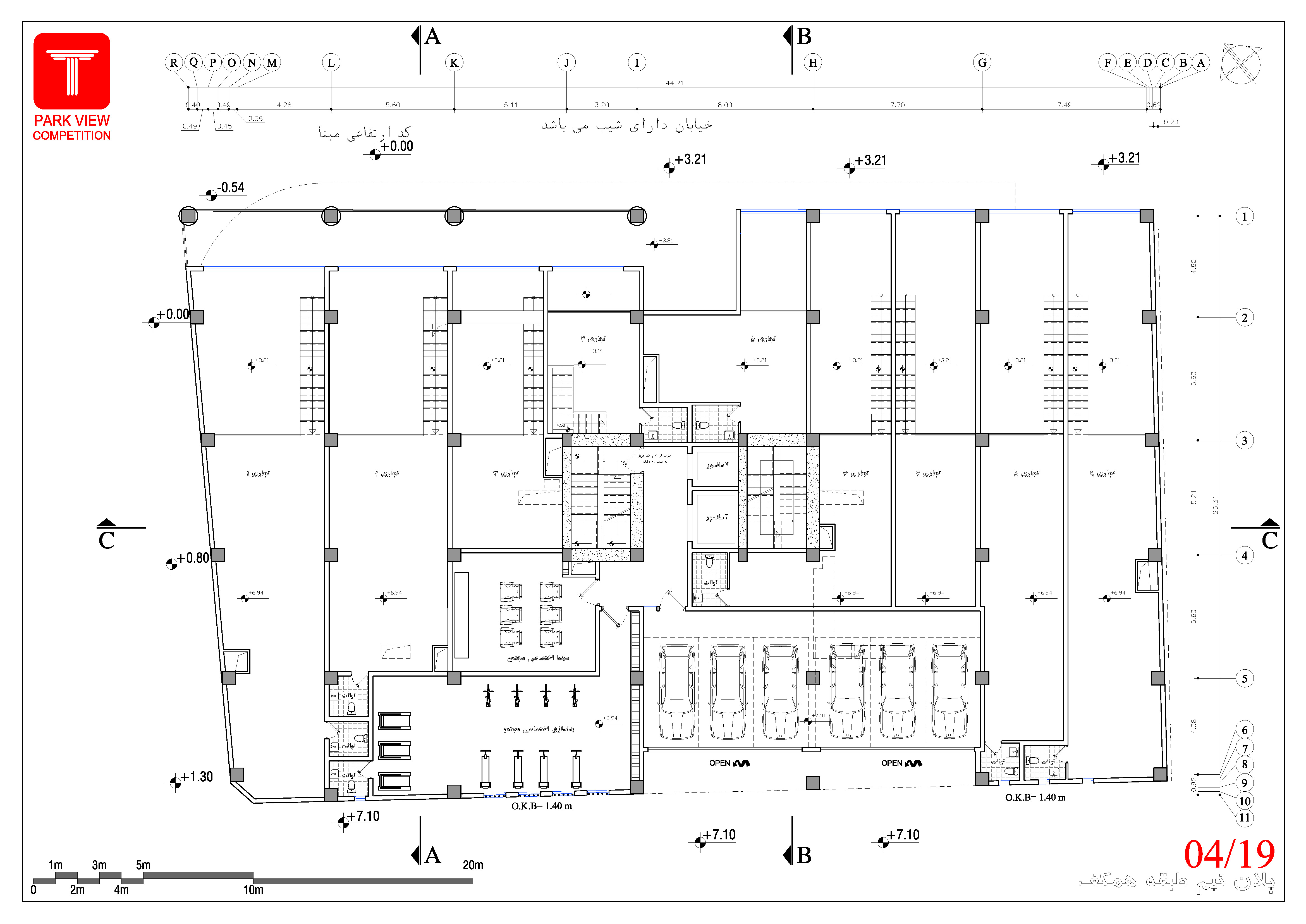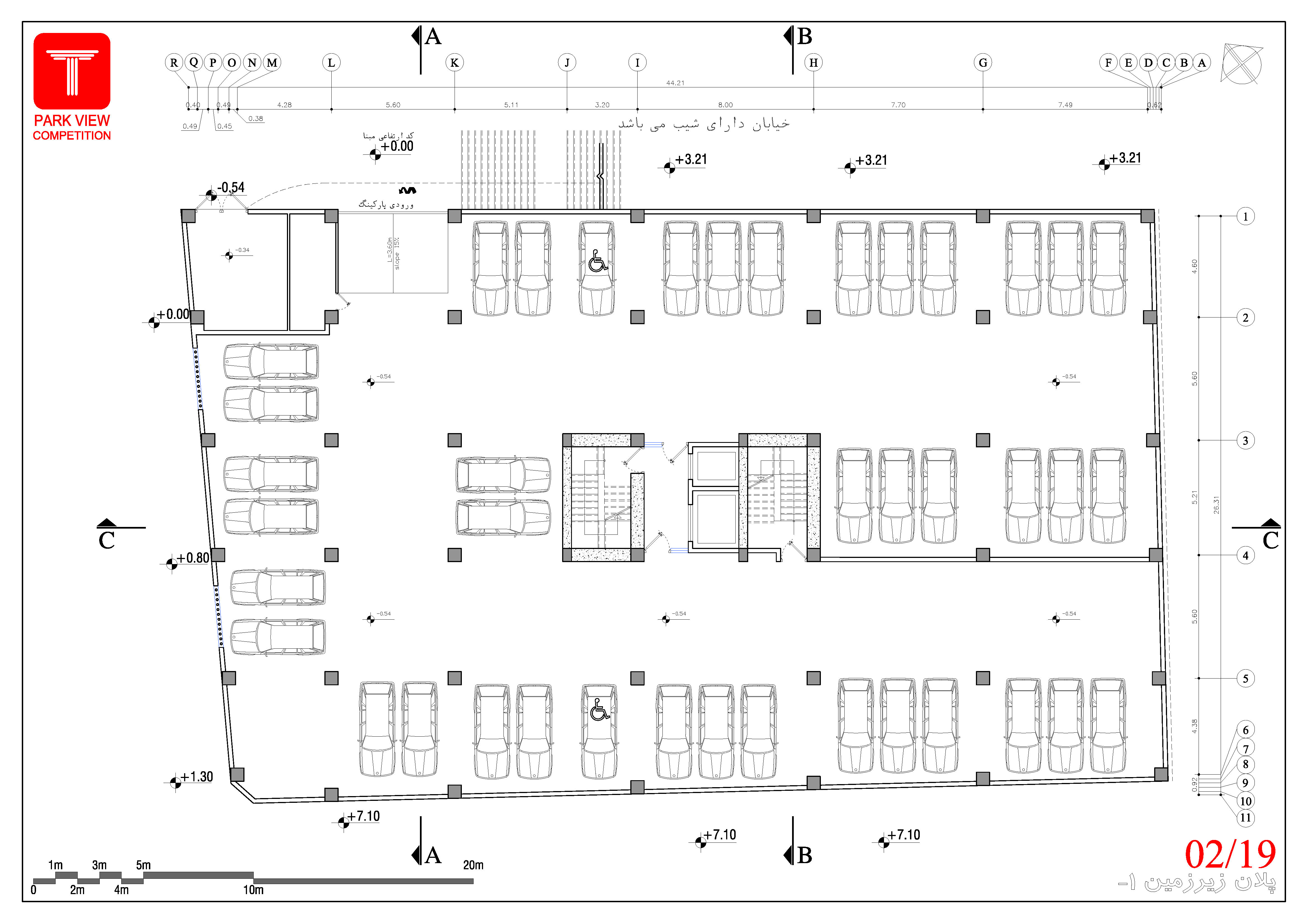 • پارکینگها اندازهگذاری شود.