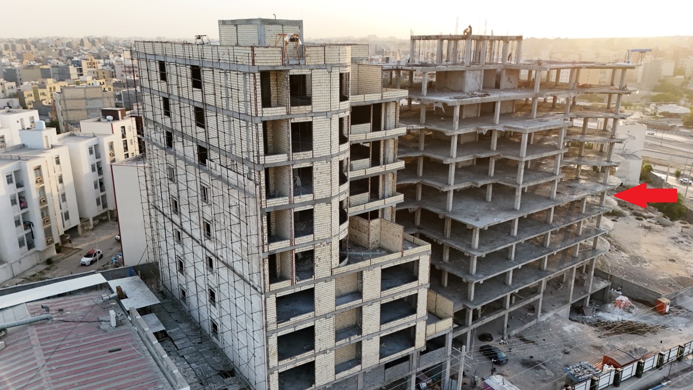 • سازه ساختمان اجرا شده است. بنابراین امکان تغییر در پلان برای حجم سازی و طراحی نما وجود ندارد.