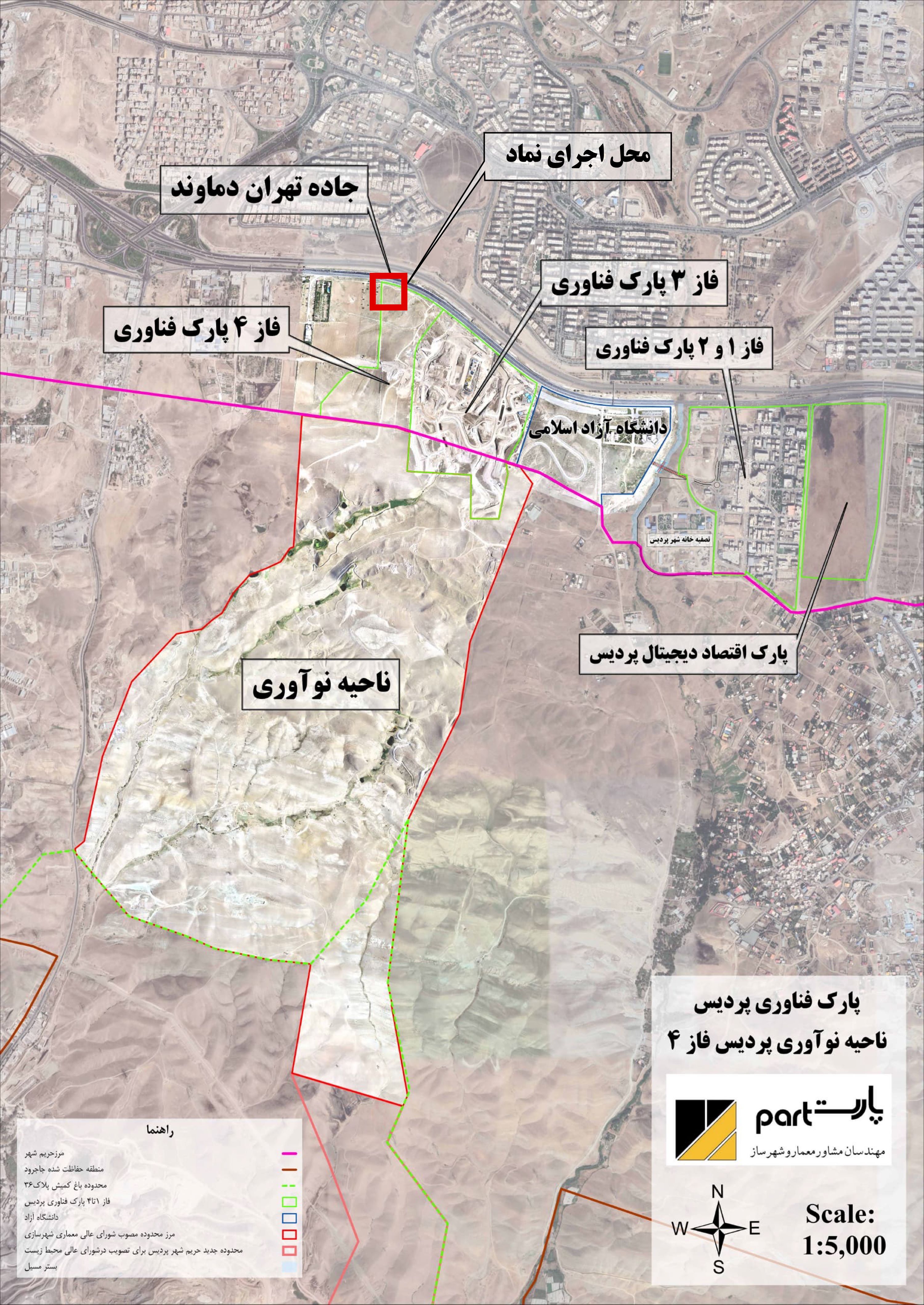 • با توجه به موقعیت پارک و مسیر پرتردد جاده دماوند حداقل ارتفاع اِلِمان به گونه ای باشد که قابل مشاهده از