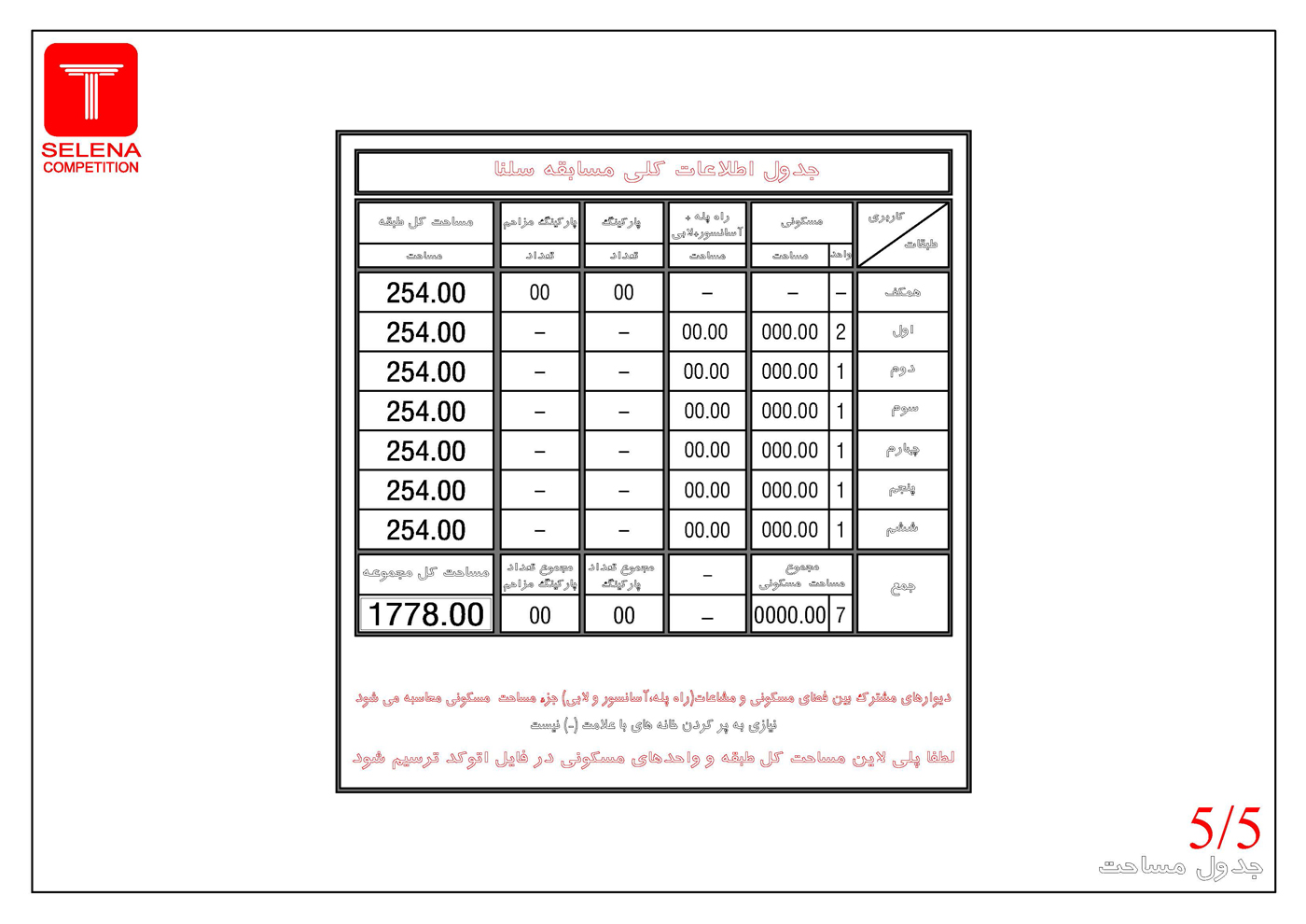 • ضوابط معماری مربوط به ساختمان سلنا در فایل اتوکد موجود در فایل های راهنما درج شده است.