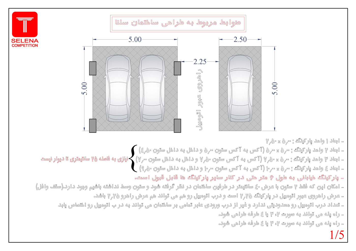 با توجه به منحصربفرد بودن ضوابط این مسابقه، لطفا طراحی پارکینگ و تمامی موارد طراحی مطابق ضوابطی که در فایل های راهنما موجود هست لحاظ گردد.