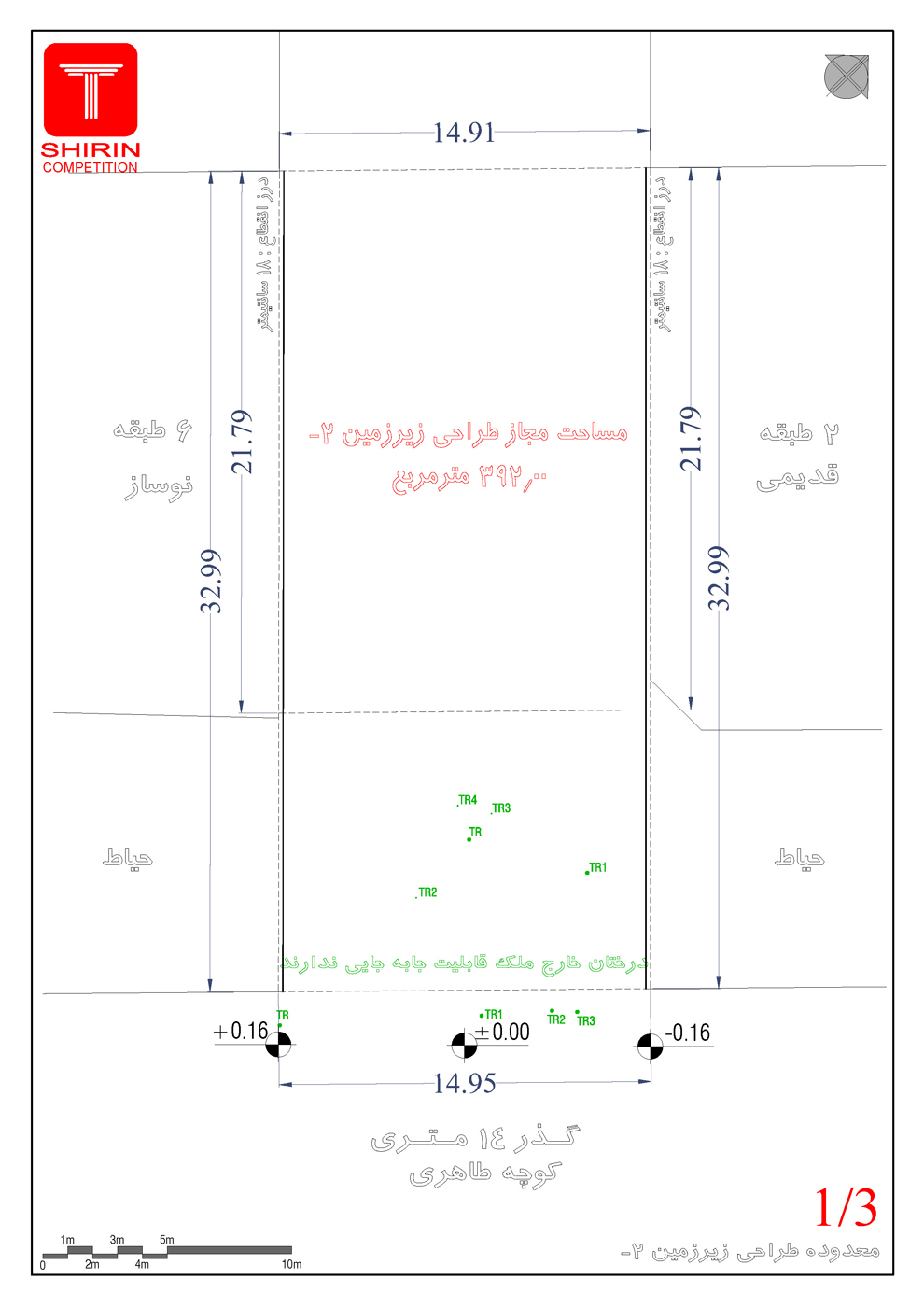 • سطح اشغال تمامی طبقات مسکونی و طبقات زیرزمین طبق محدوده تعریف شده در فایل اتوکد است.