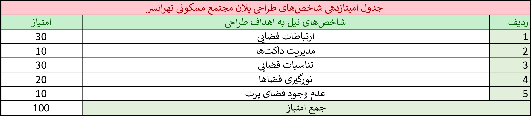 1.جدول امتیازدهی شاخصهای طراحی پلان در قسمت گالری عکس ها آپلود شد.01.02.28