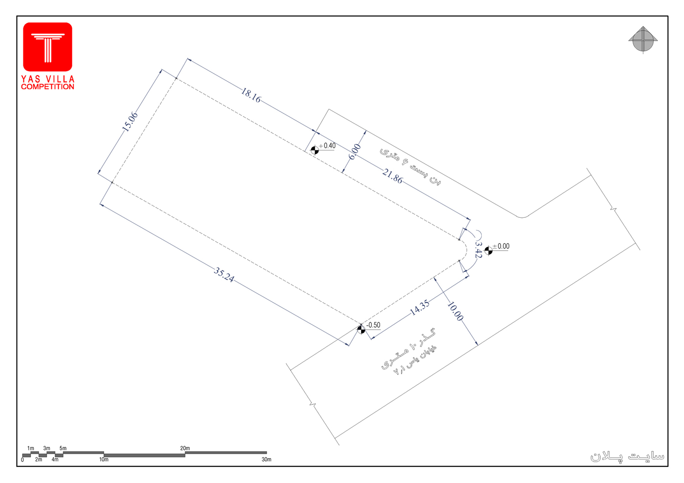 • برای جانمایی ویلا محدودیت خاصی وجود ندارد اما به سمت غرب سایت باشد.به نحوی که یک حیاط پشتی جهت جانمایی استخر در نظر گرفته شود.