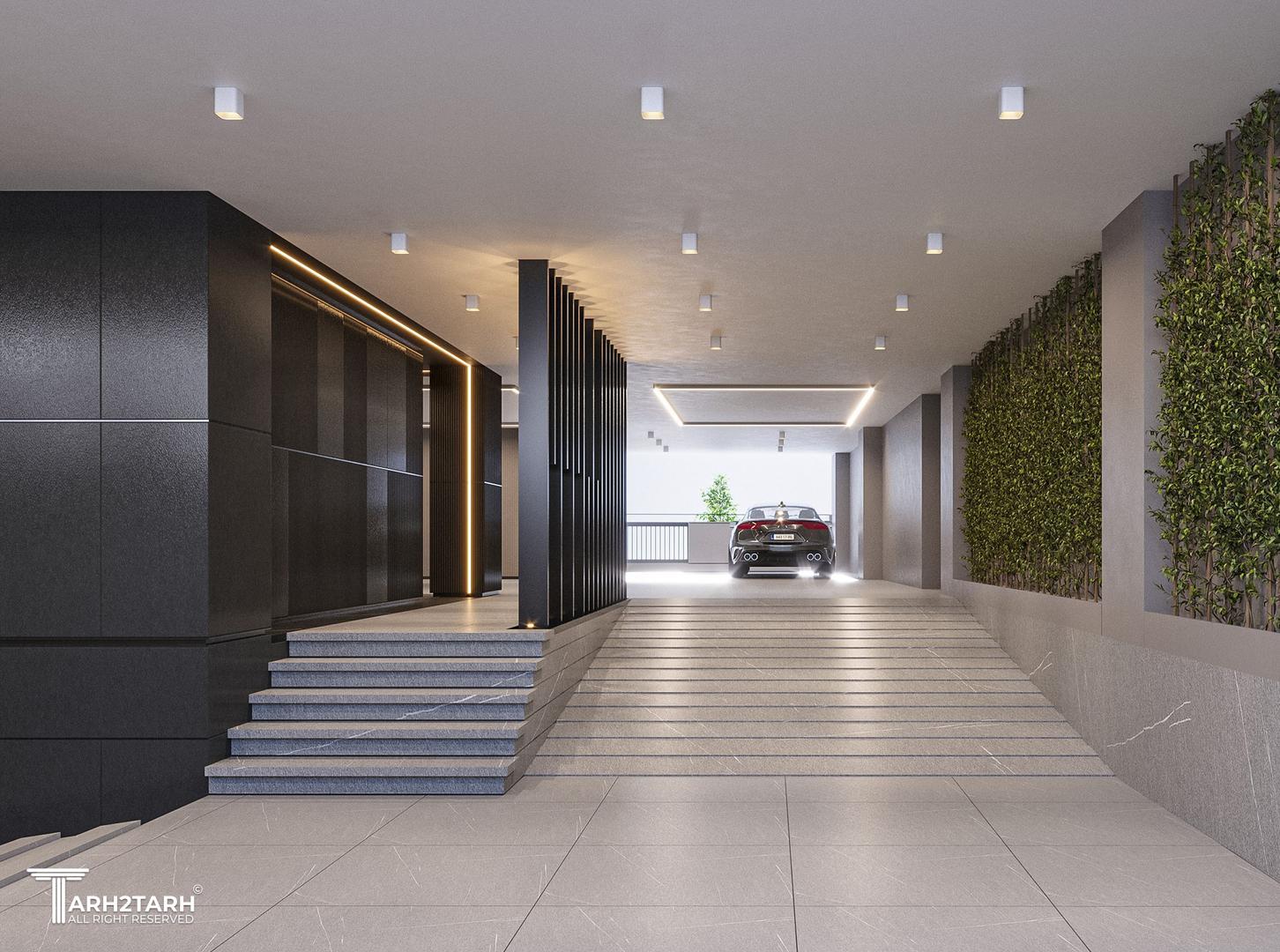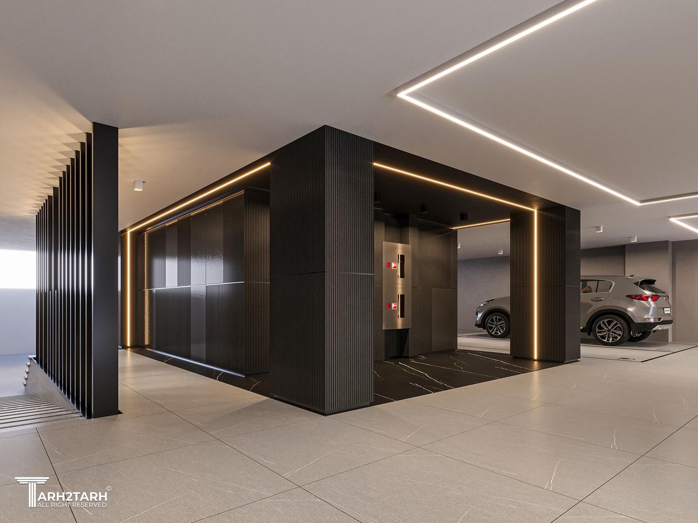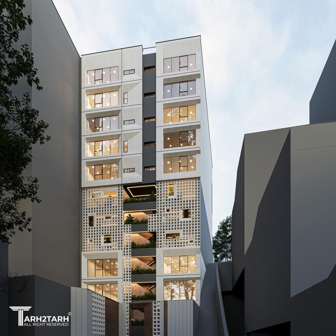 یکی از چالش های اساسی این نما جای گرفتن طبقات پارکینگ در دل نمای این ساختمان بود که با استفاده از عناصر طراحی سعی در پوشاندن آن ها داشتیم.