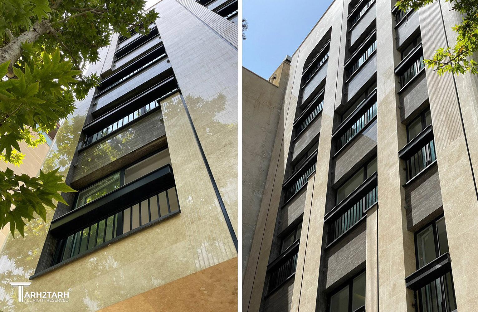 پروژه مسکونی خوارزم واقع در منطقه شهرک غرب تهران در زمینی به متراژ ۲۱۰ متر با زیربنای 940مترمربع واقع شده است. در طراحی نمای پروژه سعی شده از حرکات سیال و متنوعی استفاده شود تا ترکیب بندی متناسبی حاصل شده که با فلاور باکس های ایجاد شده در لبه پنجره همراه شود. استفاده از متریال های اقتصادی در عین حال با کیفیت و با دوام در شرایط آب و هوایی متنوع از نکات قابل توجه در طراحی با توجه به خواست کارفرما میباشد. پنجره های تمام قد و بازی در نما و پلان، حاصل تفکر همزمان بین پلان و نما میباشد. طراحی درب های ورودی و پارکینگ و دیواره حیاط نیز متناسب با طراحی نما و بام پروژه میباشد