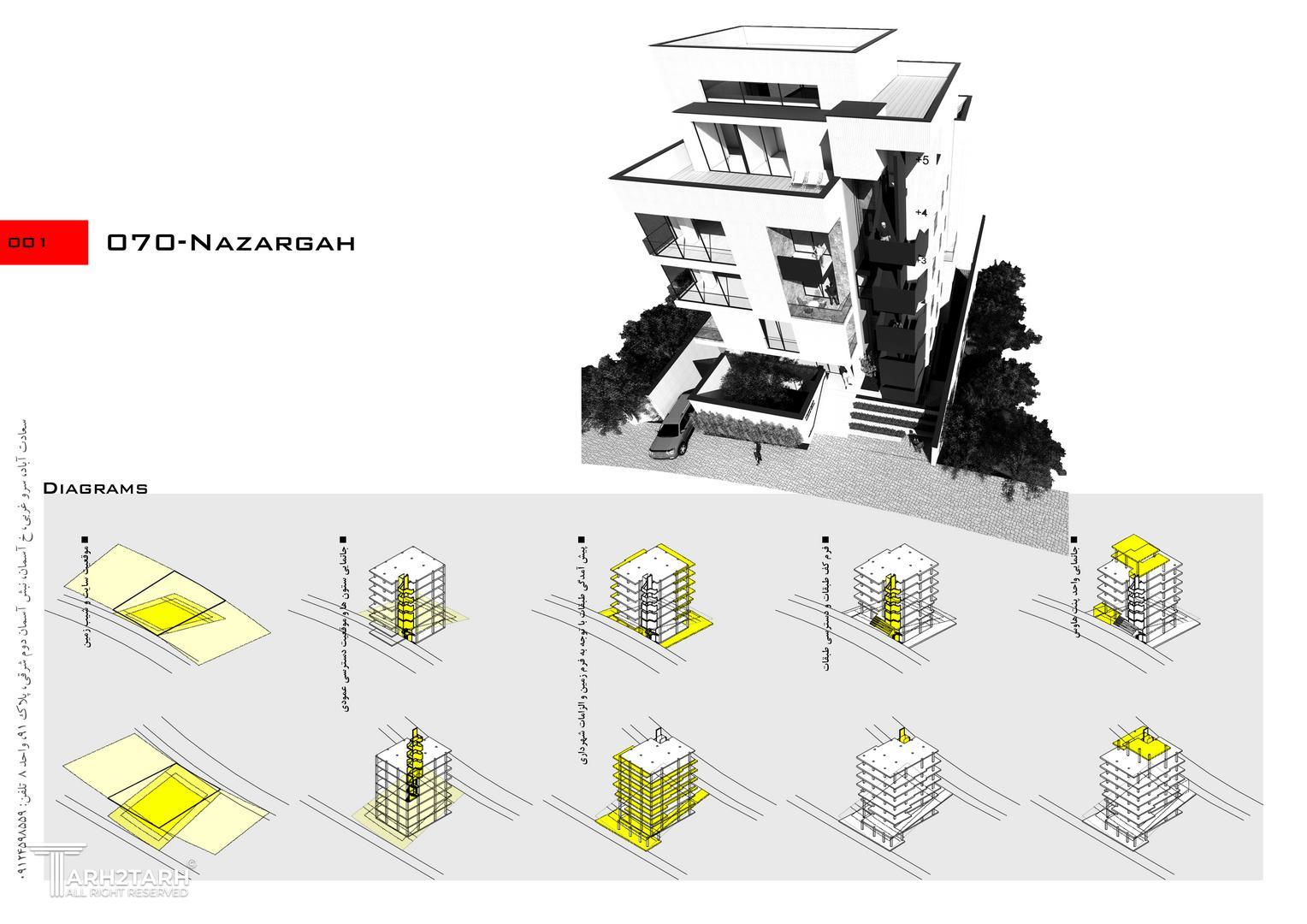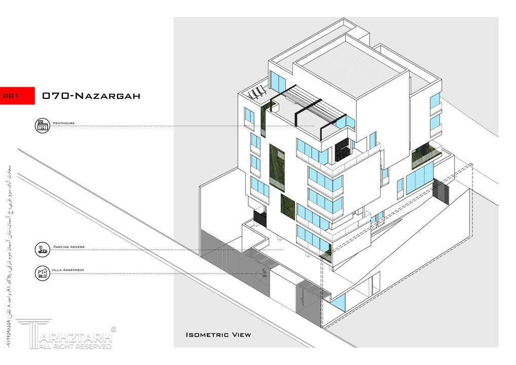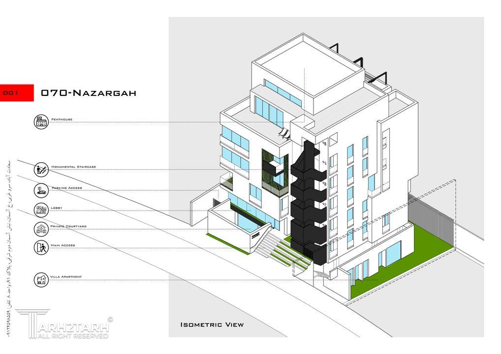سایت پروژه بر روی زمین شیبداری واقع شده بود که دید به سمت میدان ورودی شهر پردیس را داشت. هدف پروژه دسترسی آسان و سریع به واحدها بود که در عین حال که بیشترین پارکینگ را تامین می کند شرایطی را بوجود بیاورد تا چندتا از واحدها حالت ویلایی داشته باشند که علاوه بر دسترسی مستقل، به حیاط و فضای سبز نیز دسترسی داشته باشند ...