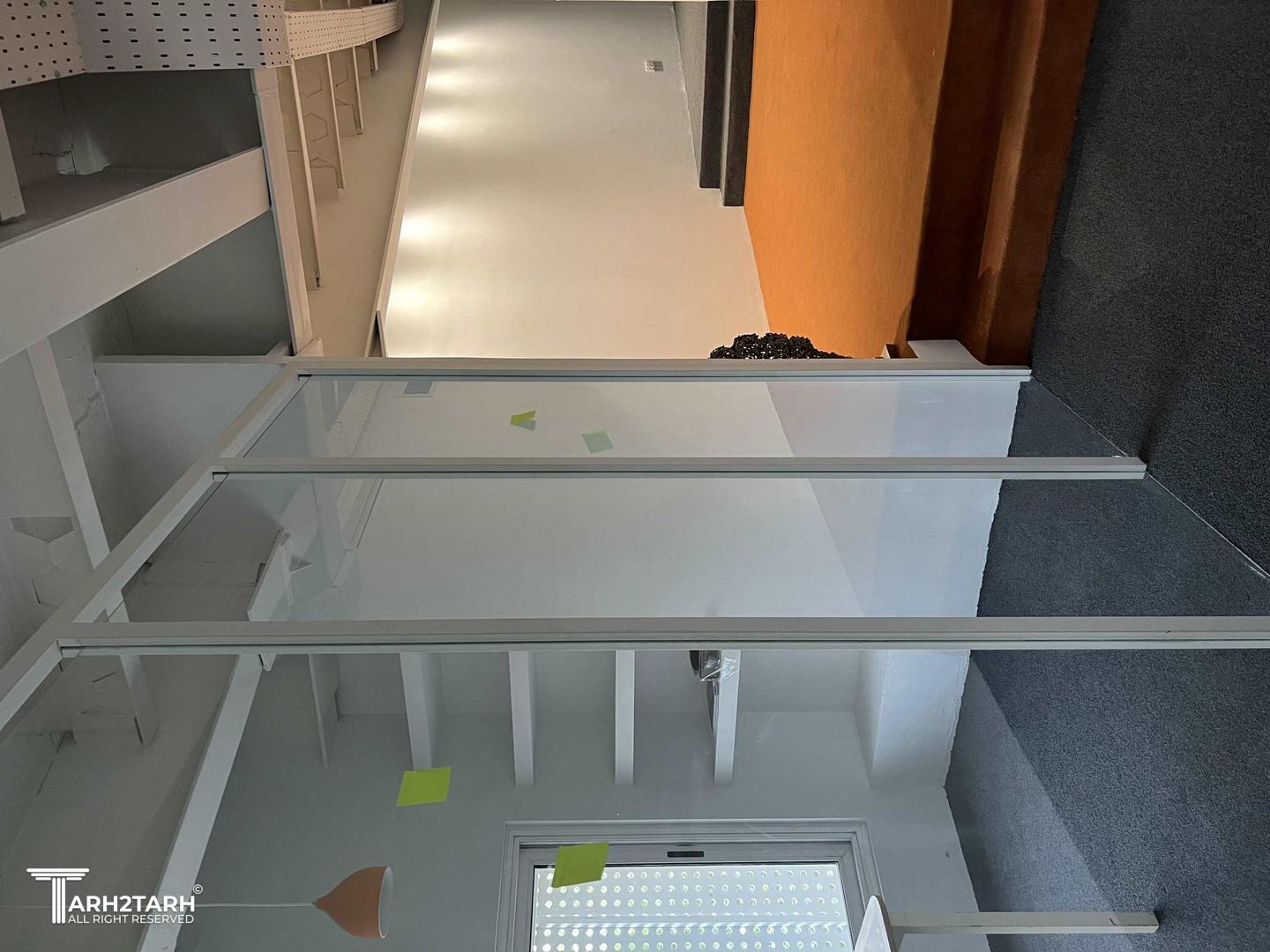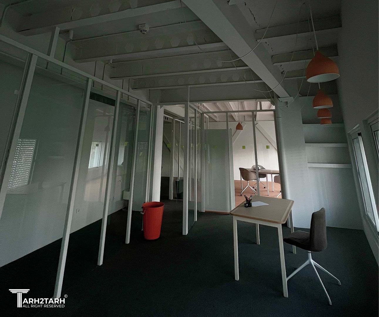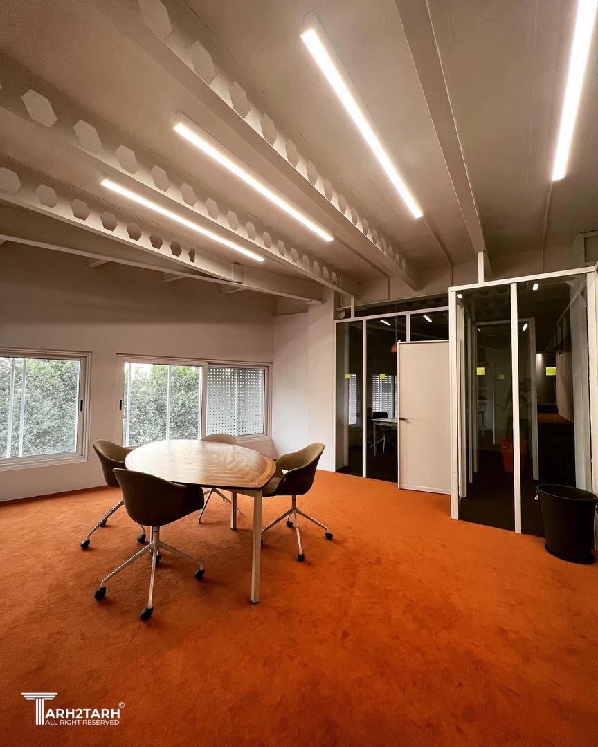 واحد اداری به علت پلان کشیده ای که داشت یکی از بزرگترین چالش های تیم ما برای نقسیم بندی فضاها شد به گونه ای که در نگاه اول امری محال به نظر می آمد با پیش رفتن کار و لکه گذاری ها بر اساس فضاهای مورد درخواست کارفرما به پلان متفاوت و کاربردی رسیدیم در واقع موضوعی که در نگاه اول نقص پروژه بود تبدیل به نقطه قوت شد و نتیجه بسیار دلپذیر شد.
