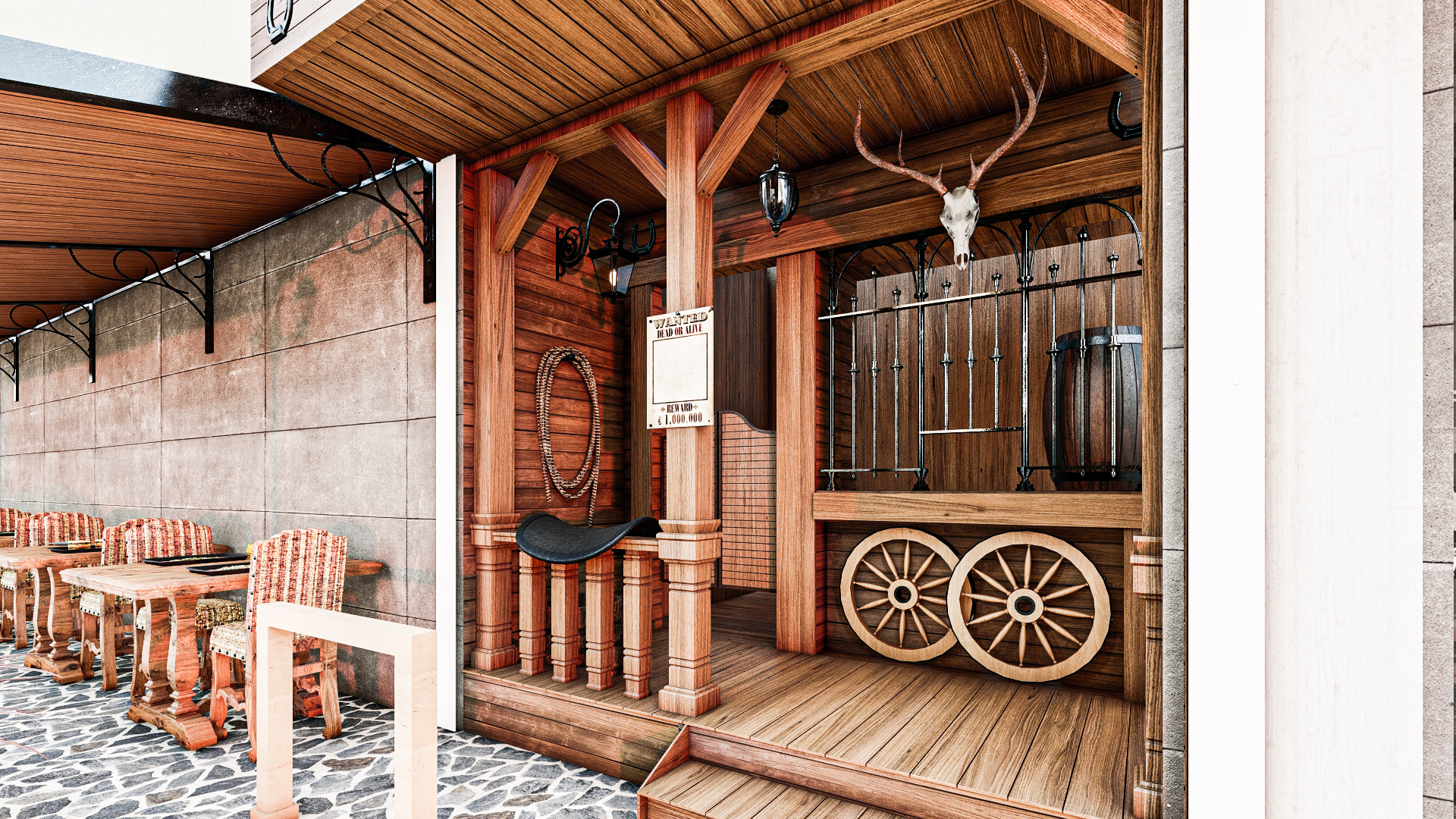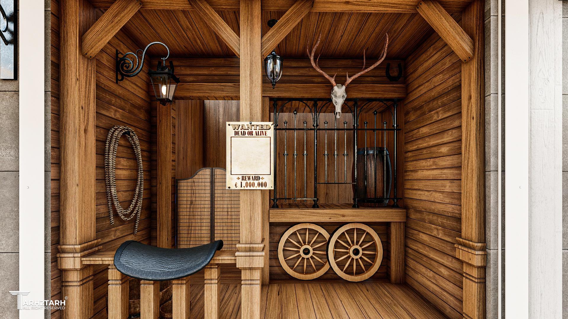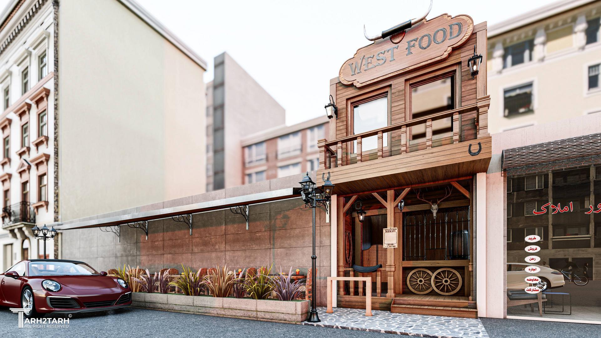طراحی یک رستوران کوچک در دل شلوغی شاهگلی با تم غرب وحشی (وسترن). همچنین نام آن نیز west food بود پس طراحی تمام جزئیات با توجه به همین تم درنظر گرفته شد