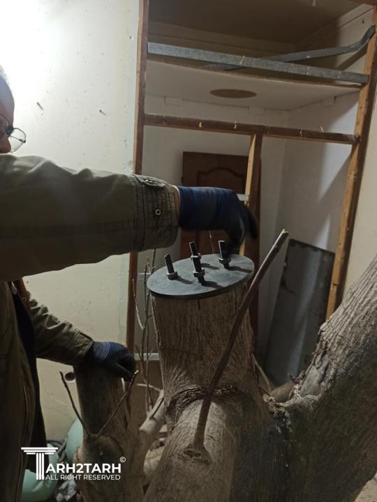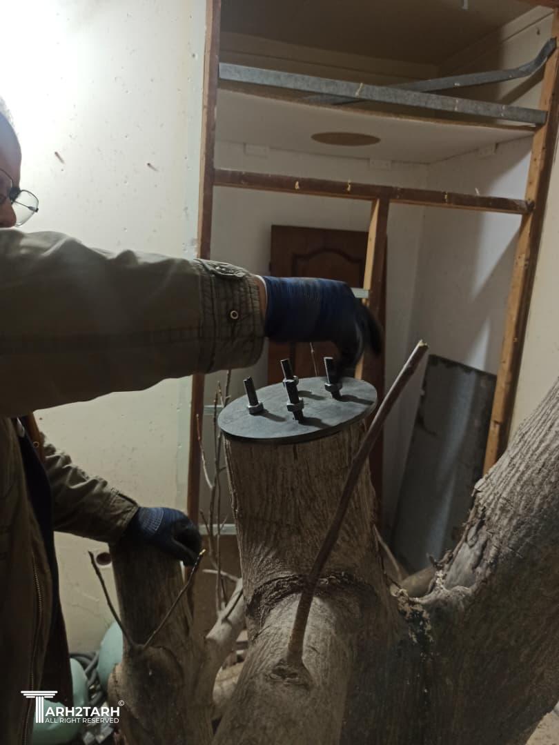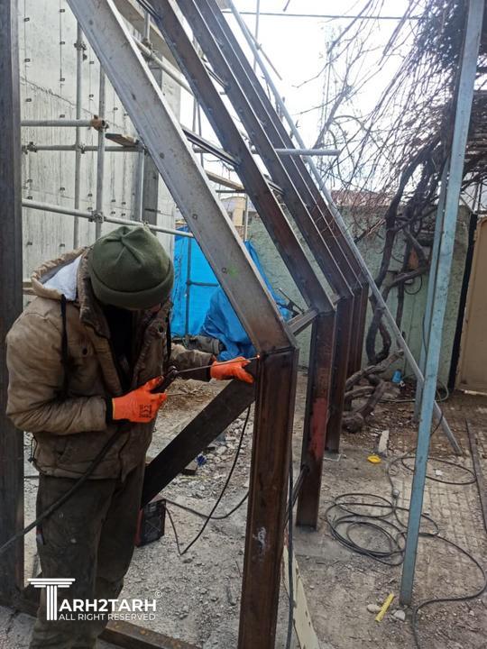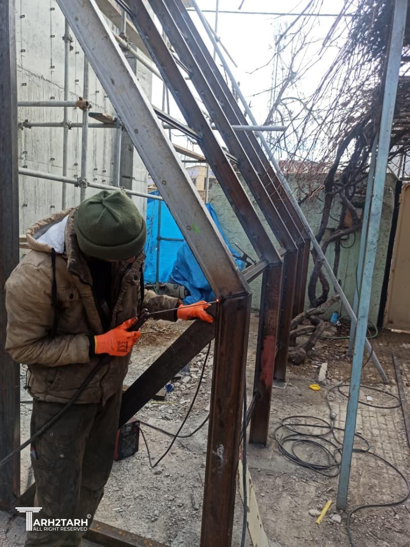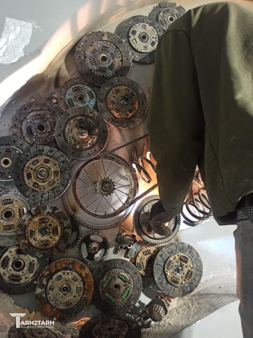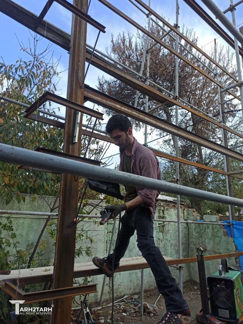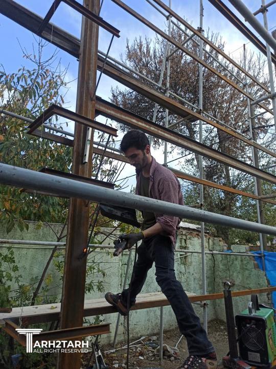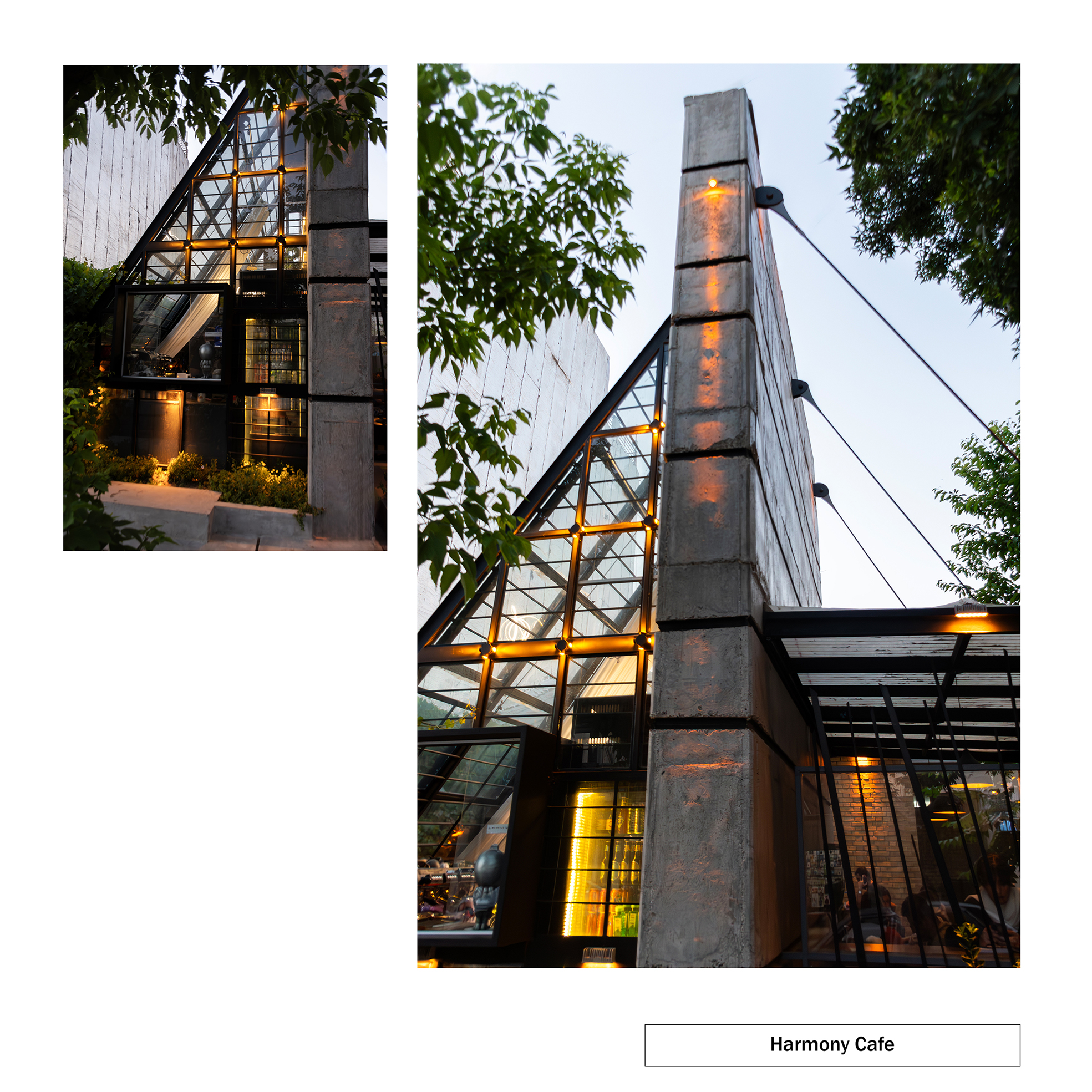 برای ایجاد تفاوت با بافت زمینه خط آسمان متفاوتی با شکستگی مثلث گونه و دیوار بتنی ایجاد کردیم و سایبانی رو با کابل آویز کردیم و در طراحی داخلی از ضایعات خودرو برای اکسنت وال بهره گرفتیم و درخت خشکی را در سالن دیگه با مفصل فلزی از نو ساختیم و با میز چوبی پیوند زدیم