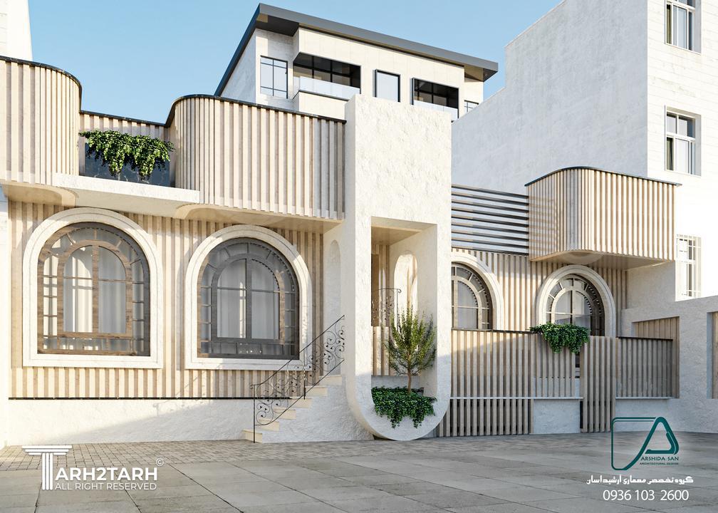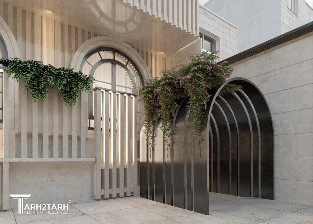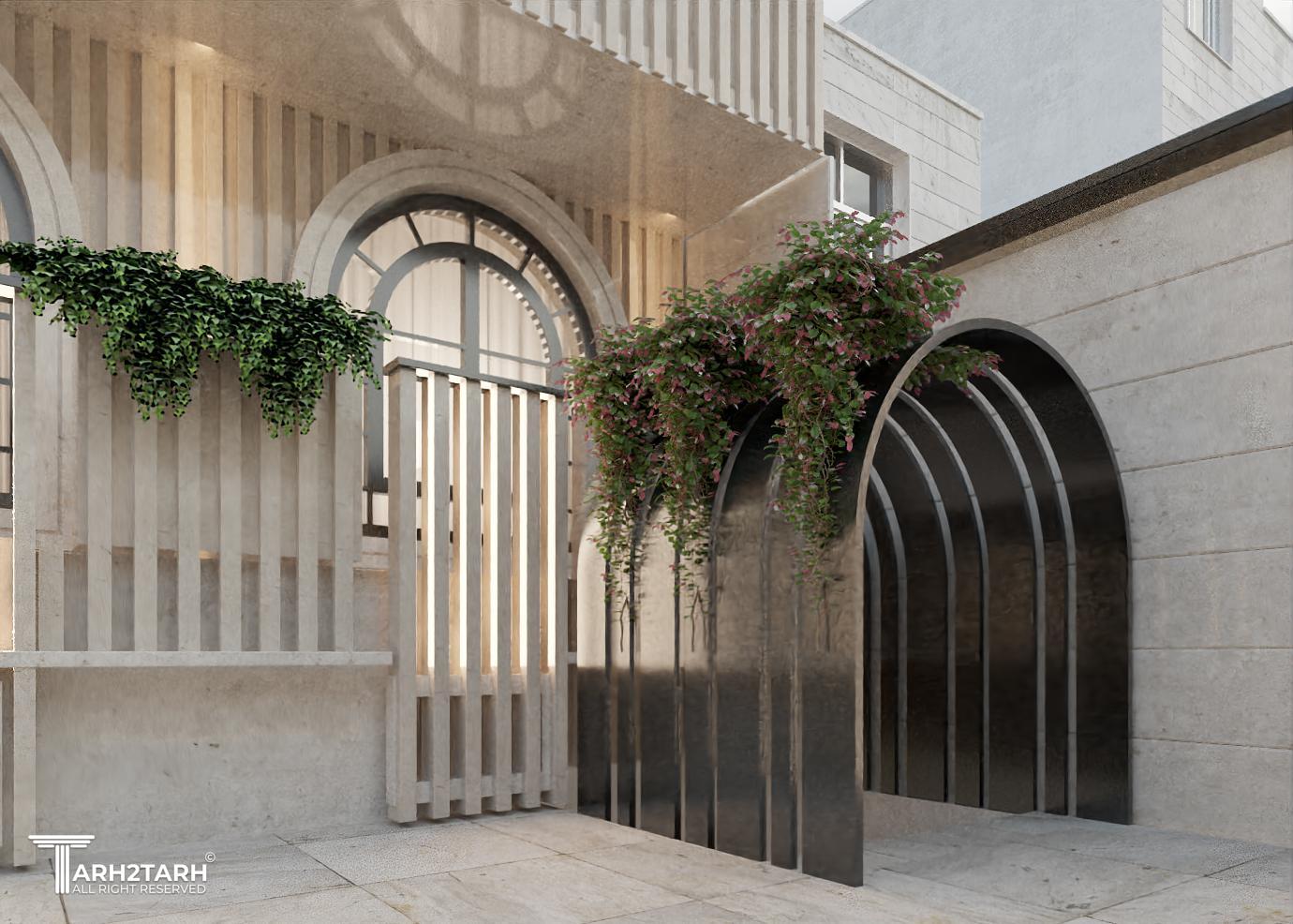 این نما بر پایه زبان طراحی مدرن-مینیمال شکل گرفته اما با جزئیات فرمال نرم و قوسدار، حس اصالت و هویت معماری ایرانی را نیز حفظ کرده است. ریتم عمودی خطوط، کشیدگی و نظم بصری پروژه را تقویت میکند و باعث میشود حجم بنا سبکتر و پیوستهتر دیده شود. قوسهای پنجرهها، نقطه کانونی نما هستند و با قاببندی ظریف خود تضادی کنترلشده میان خطوط سخت و نرم ایجاد میکنند. استفاده از آجر روشن، متریال را بهسمت لوکسبودن و ماندگاری برده و ترکیب آن با فلاورباکسها، به نما طراوت و پویایی بخشیده است.