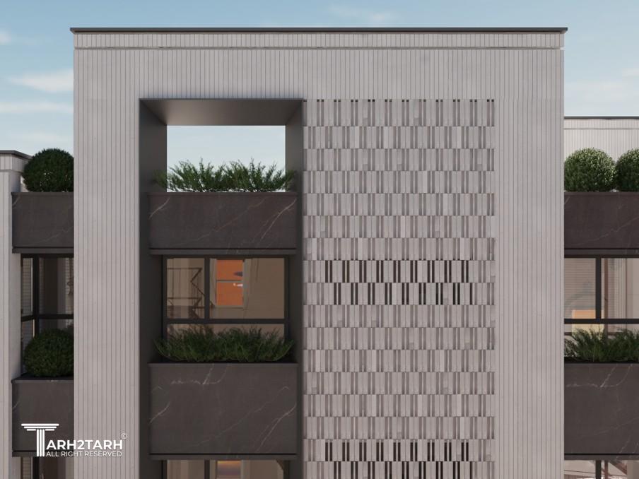 این پروژه پیش از ورود تیم طراحی تا مرحله اجرای اسکلت پیش رفته بود، اما کارفرما از وضعیت موجود رضایت کافی نداشت. بر همین اساس، در گام نخست بازنگری و اصلاح پلانها توسط تیم طراحی انجام گرفت. سپس با توجه به شرایط موجود سازه و محدودیتهای اجرایی، طراحی نما مجدداً مورد بازبینی قرار گرفته و طرح جدید با رویکردی منسجم و منطبق بر نیازهای پروژه ارائه شد.